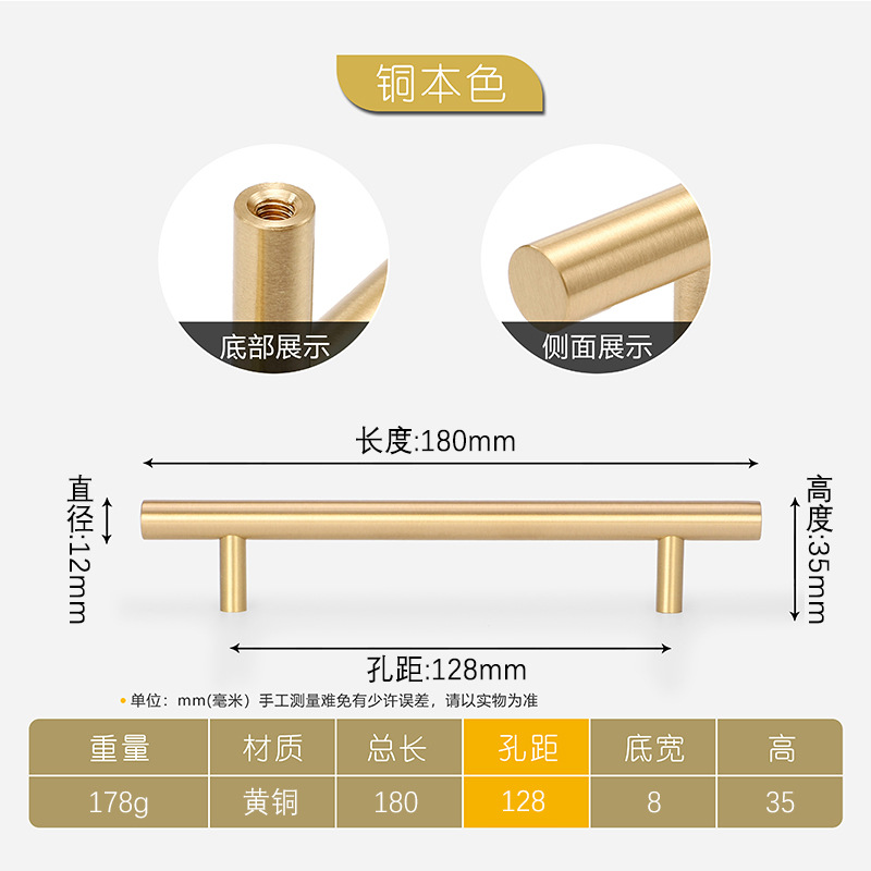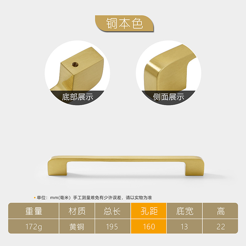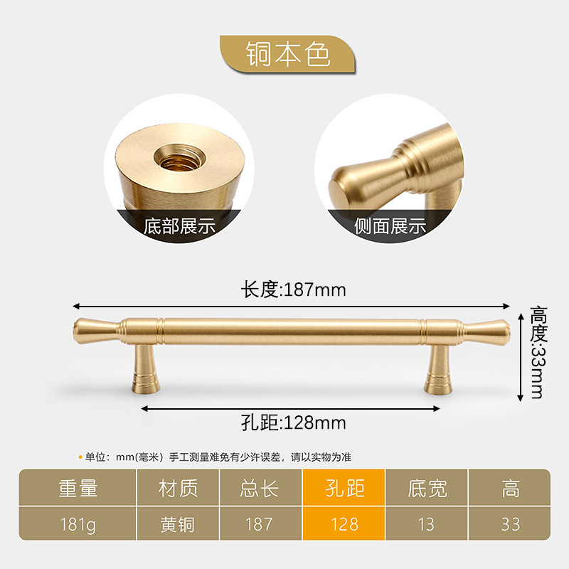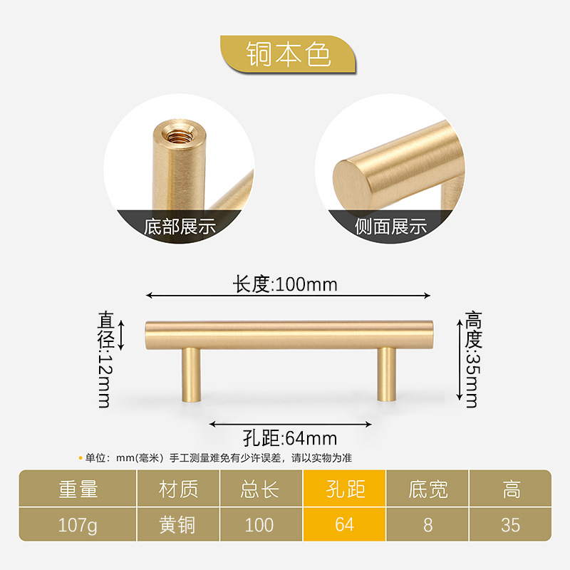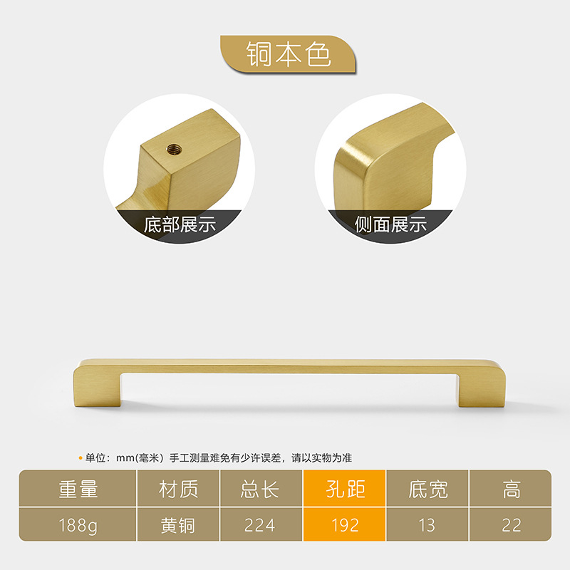 尊杰黄铜拉手金色衣柜把手柜门拉手轻奢柜子门把手法式抽屉铜拉手