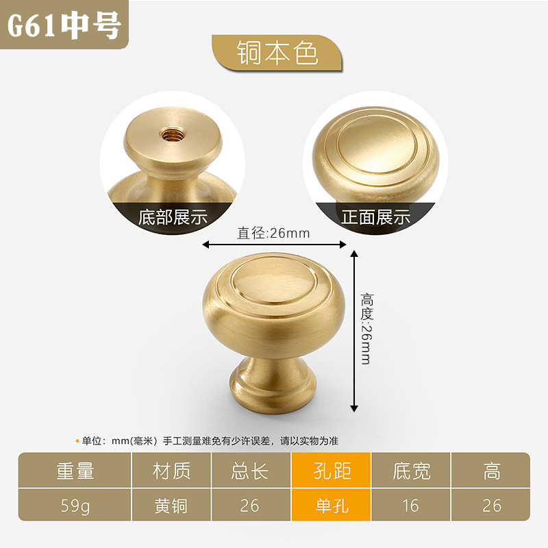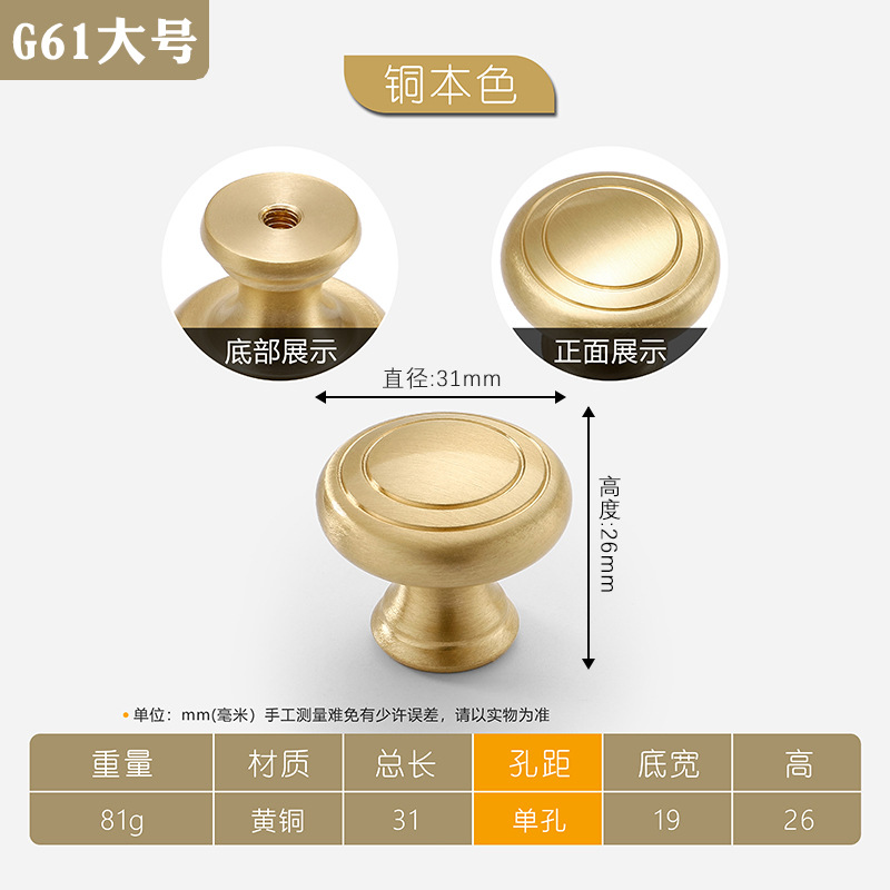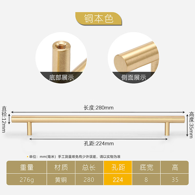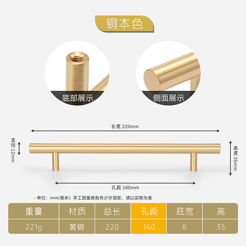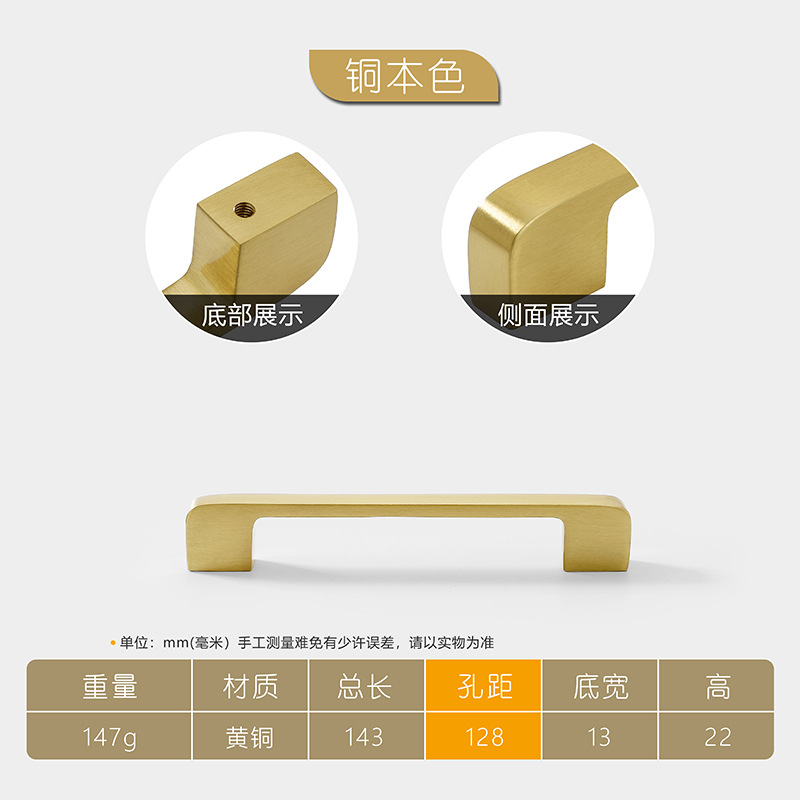 尊杰黄铜拉手金色衣柜把手柜门拉手轻奢柜子门把手法式抽屉铜拉手