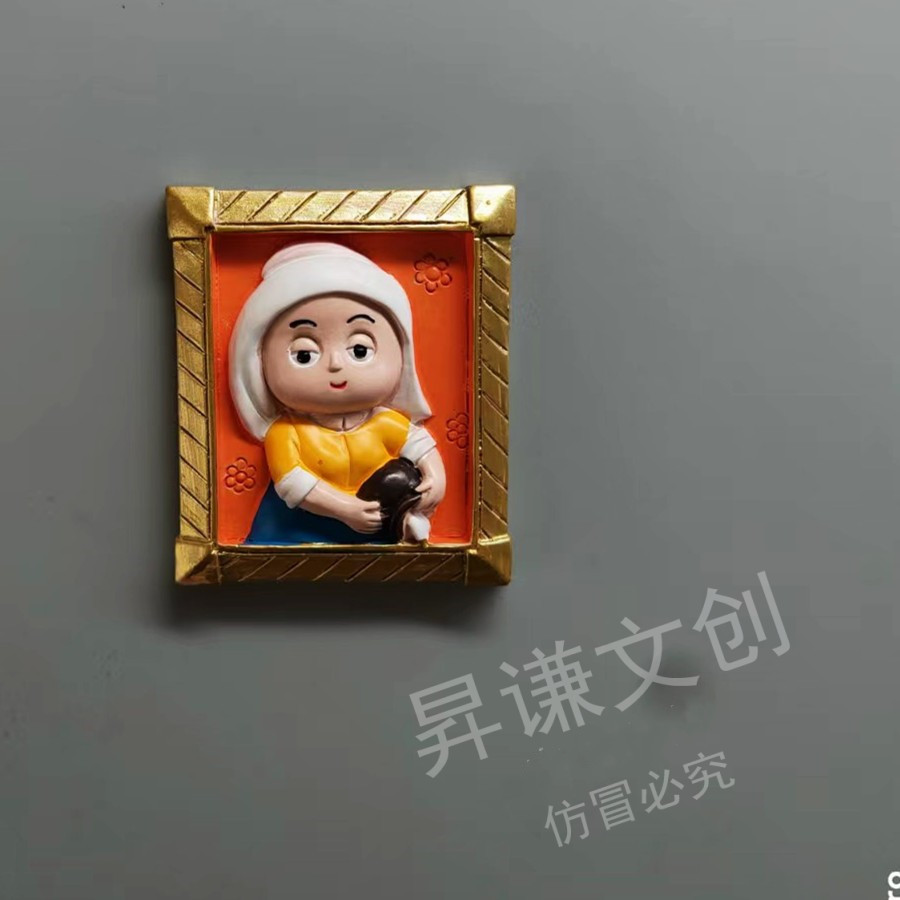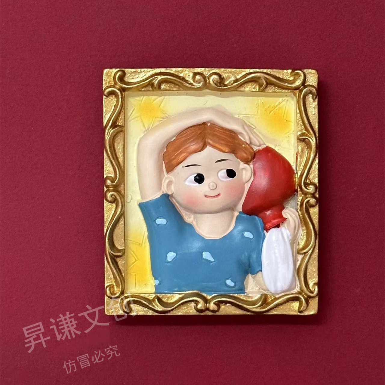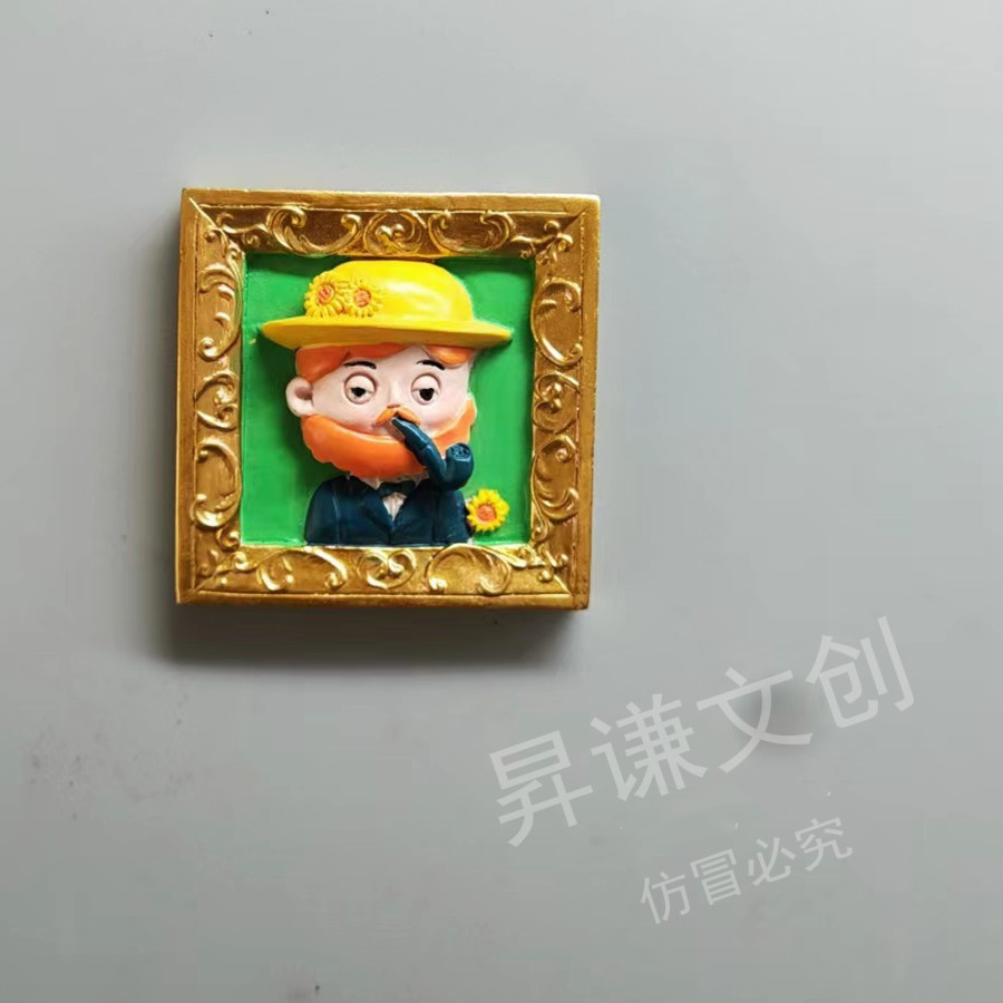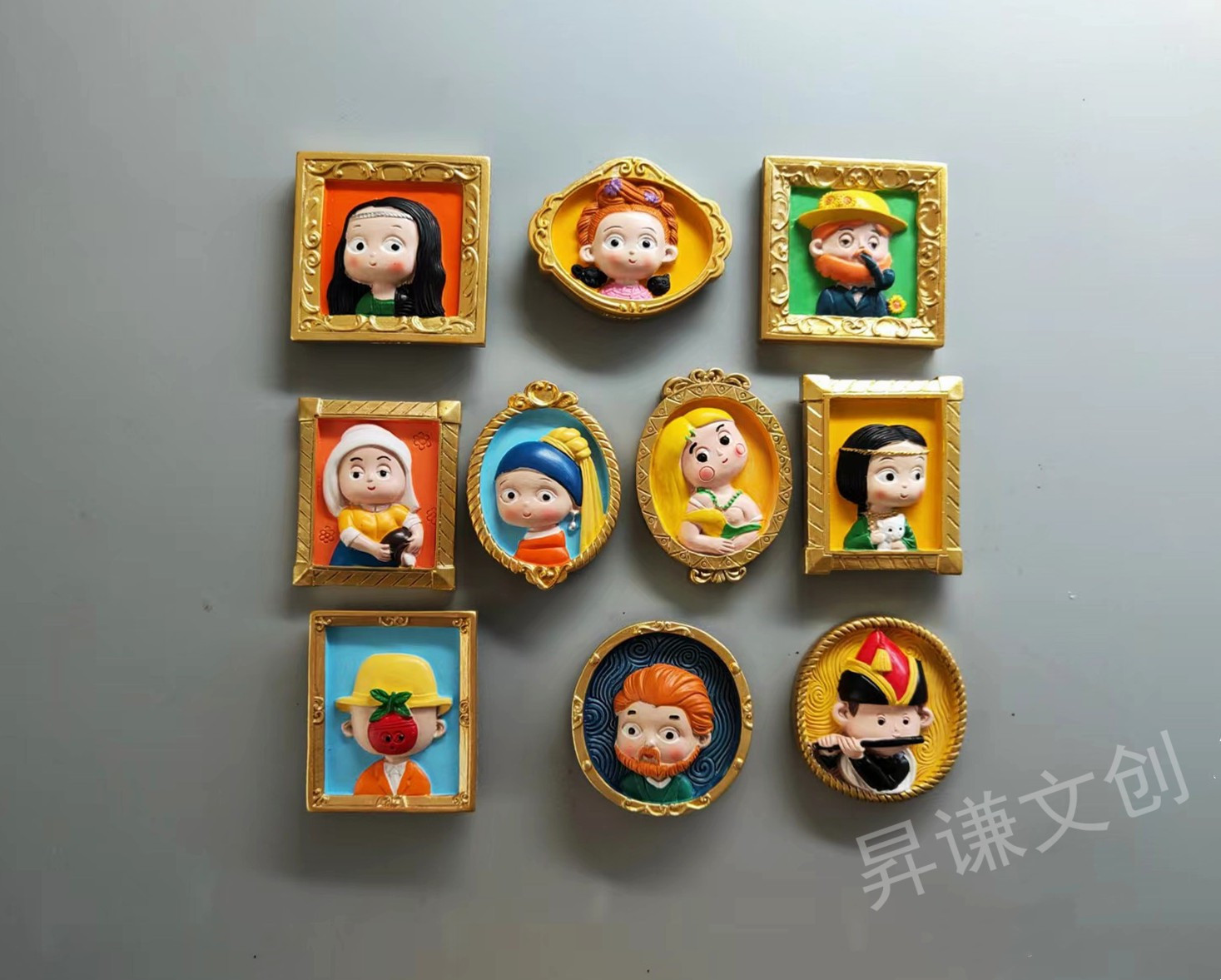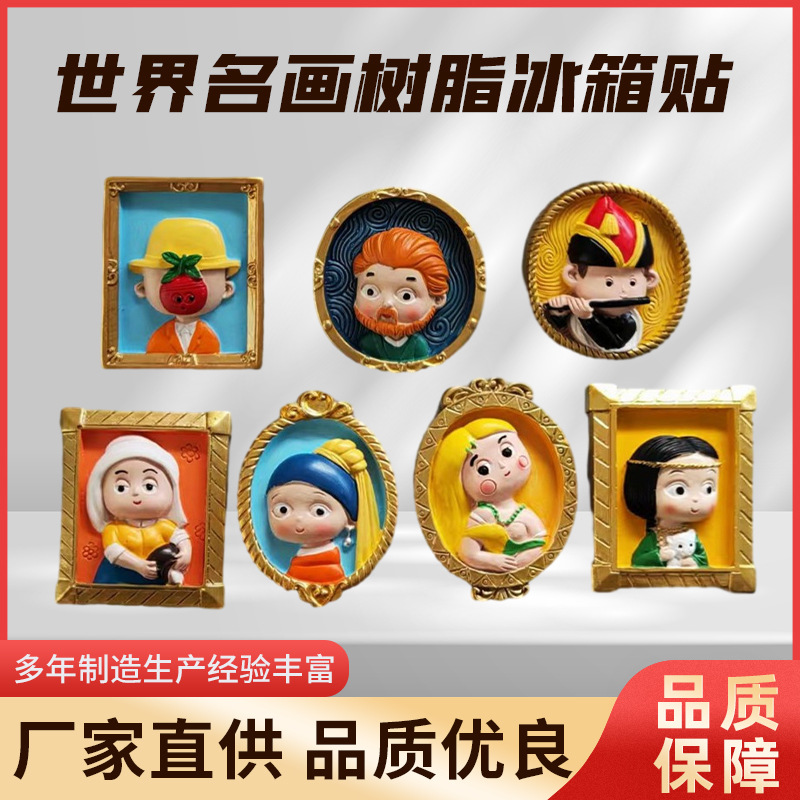 新款金框卡通世界名画树脂冰箱贴装饰厂家直供装饰创意名画冰箱贴