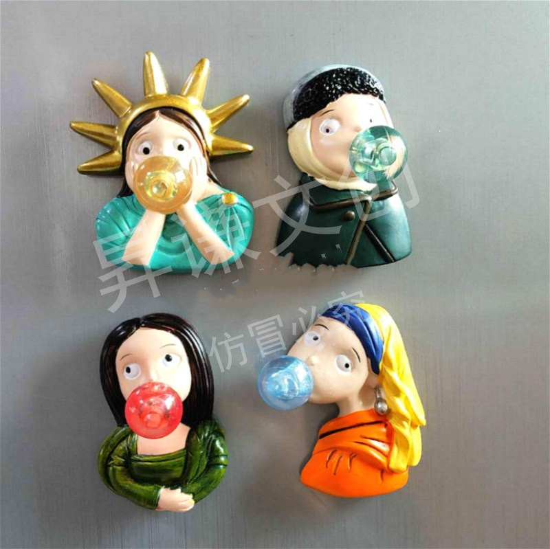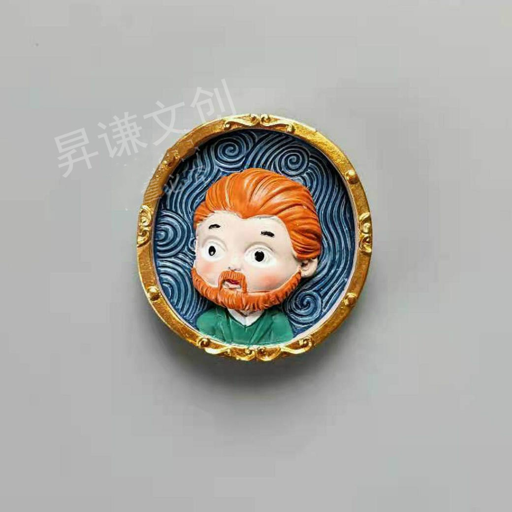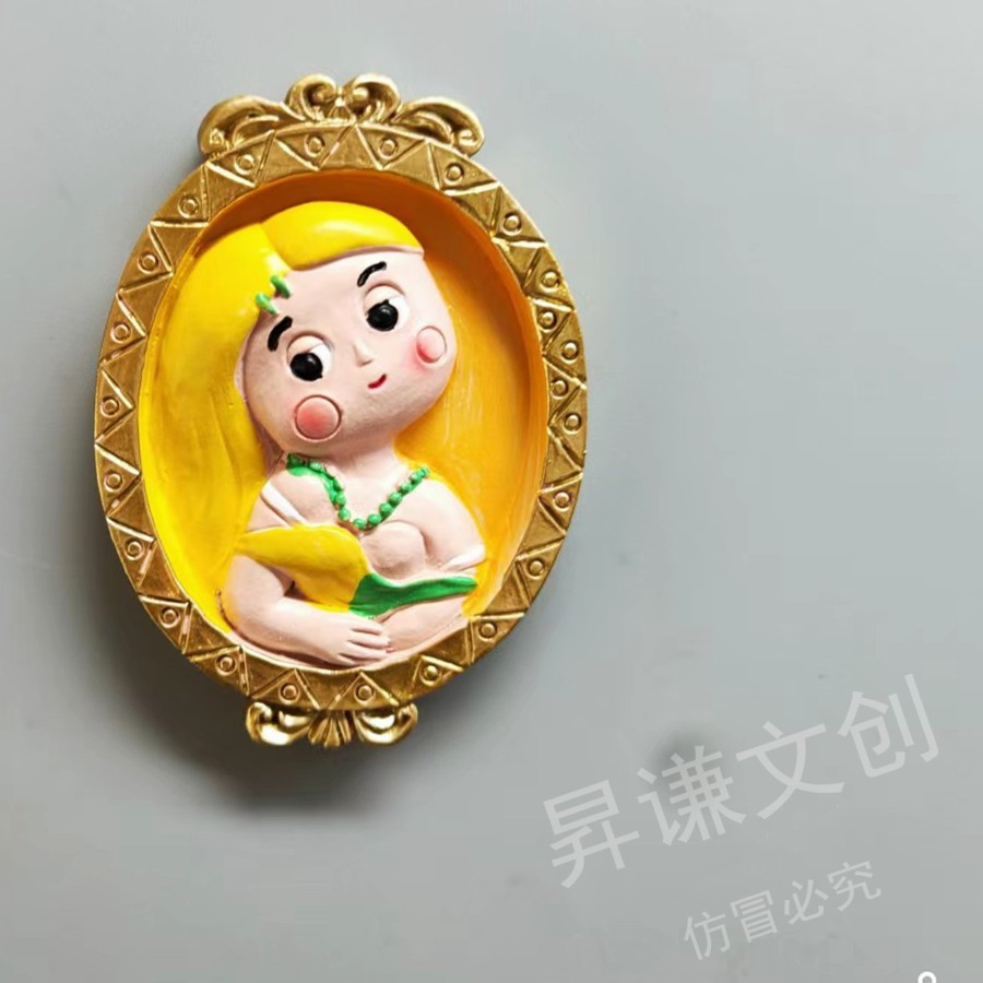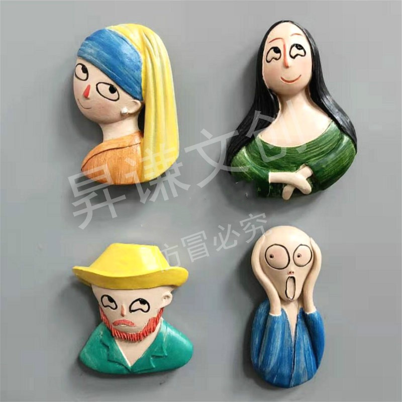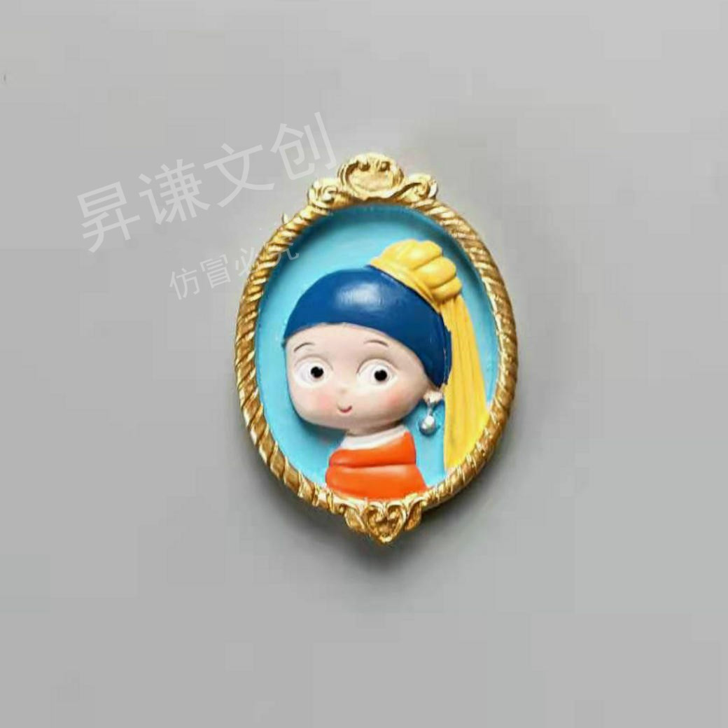 新款金框卡通世界名画树脂冰箱贴装饰厂家直供装饰创意名画冰箱贴