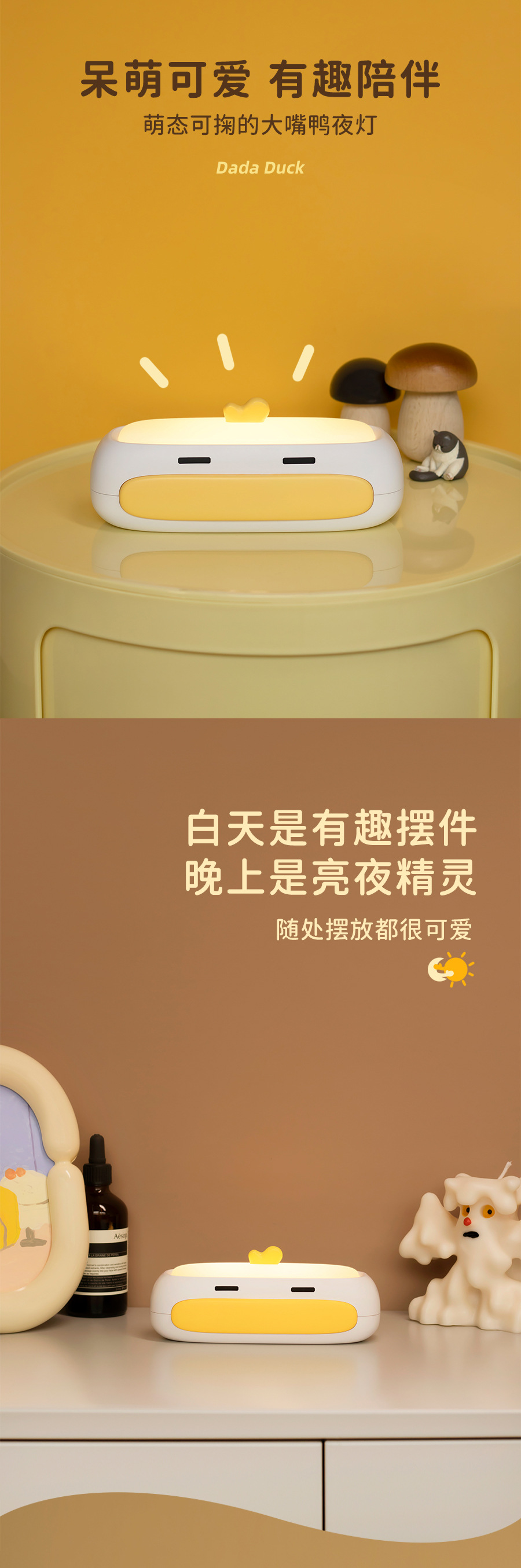 大嘴鸭小夜灯卧室床头氛围灯睡眠婴儿宝宝喂奶护眼夜间柔光灯充电
