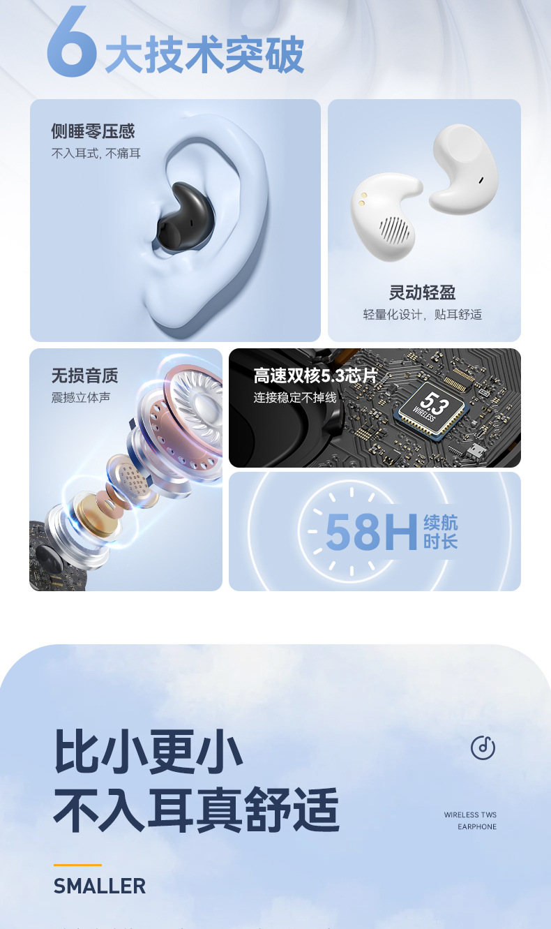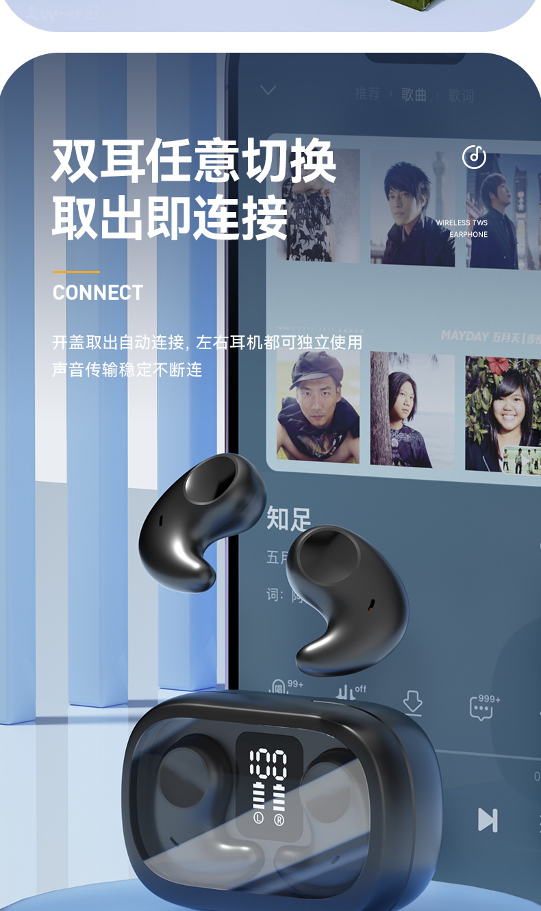 跨境专供新款耳机无线蓝牙华强北降噪不入耳睡眠蓝牙耳机电子产品