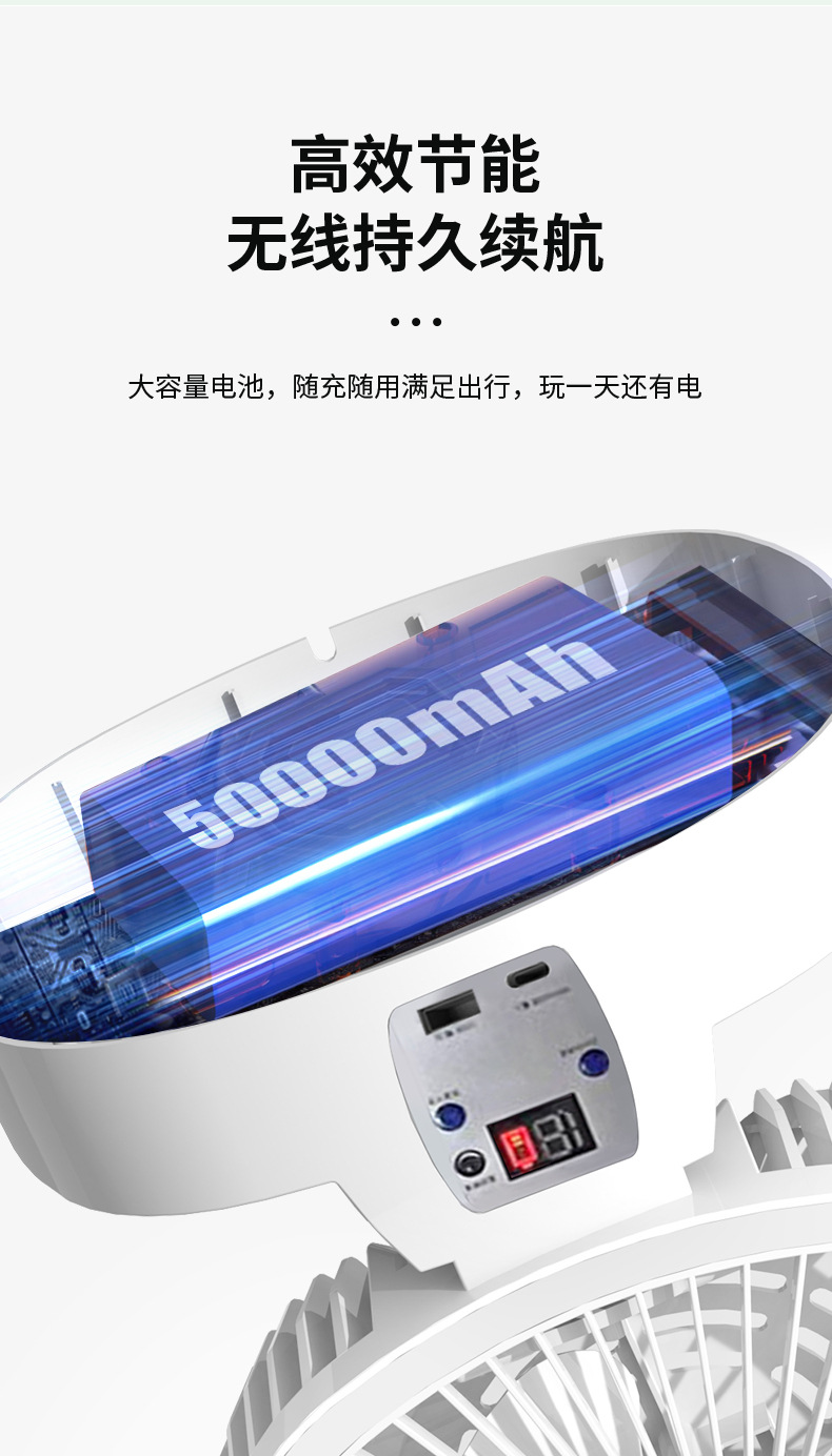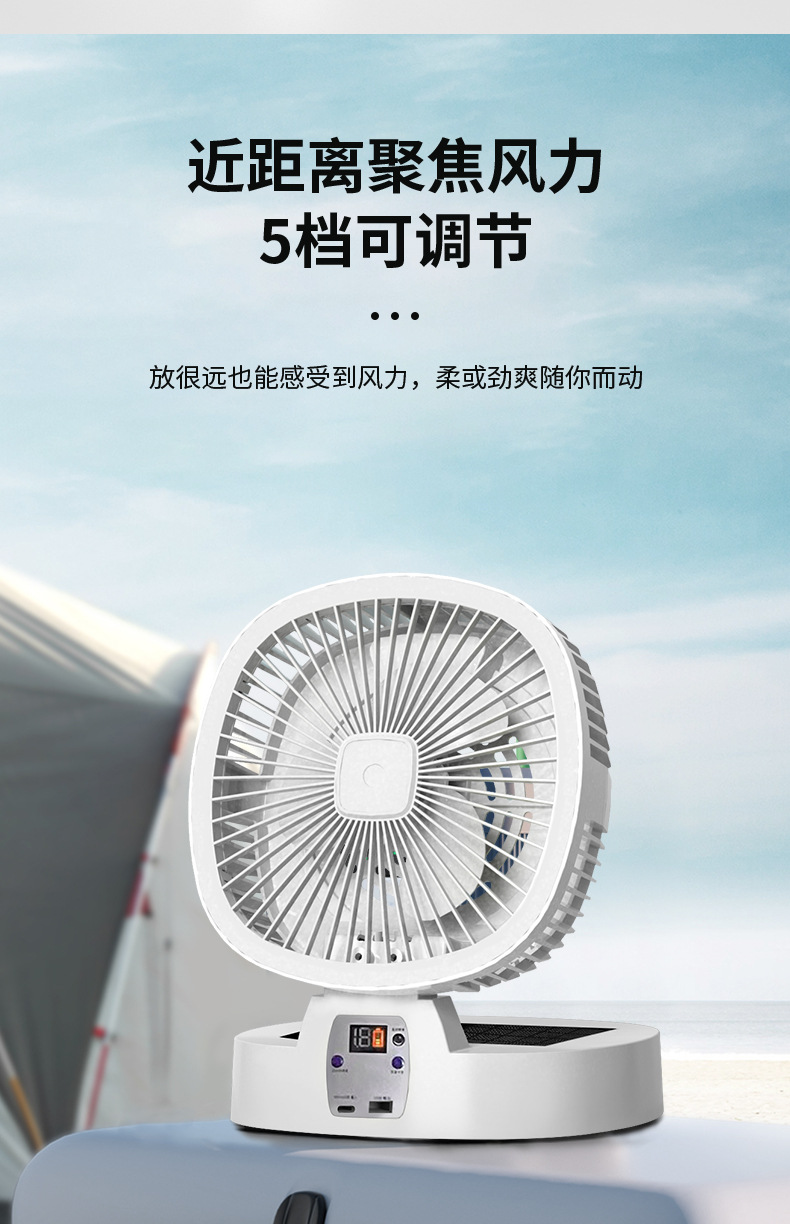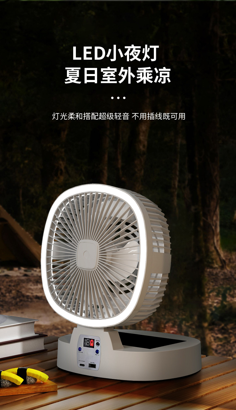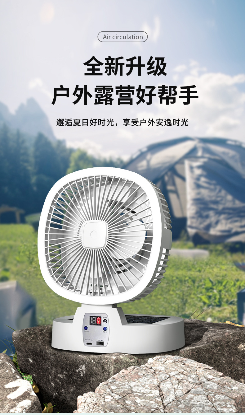 跨境新款室内户外露营风扇太阳能可充电超长续航无线便携式调灯电