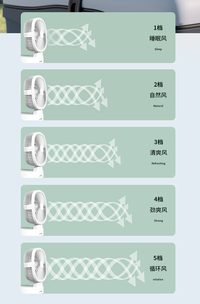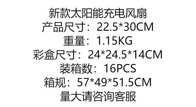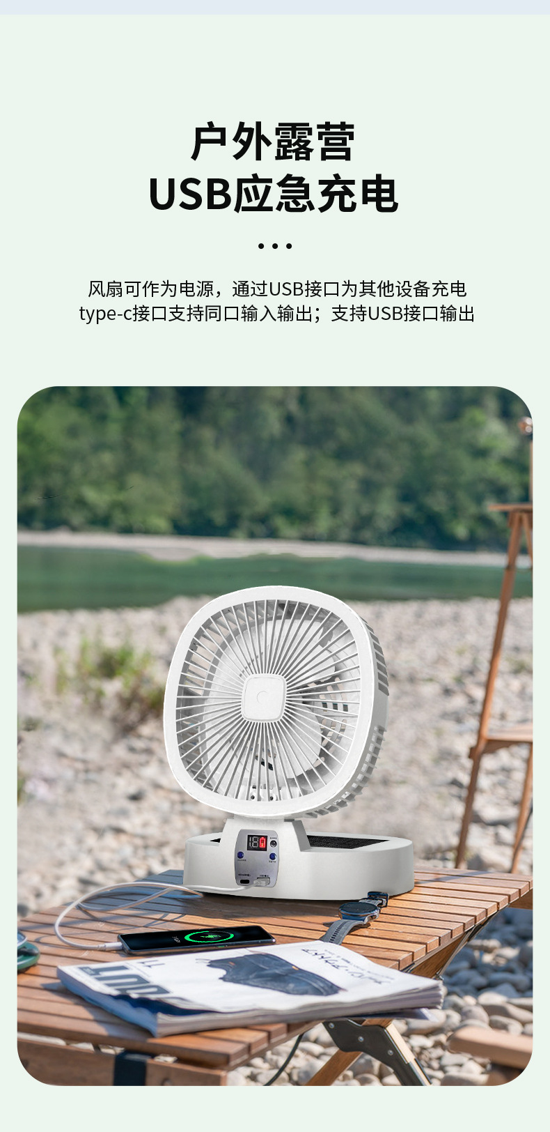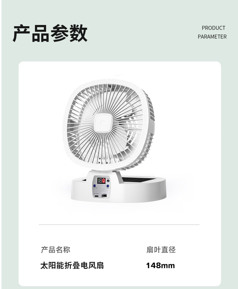跨境新款室内户外露营风扇太阳能可充电超长续航无线便携式调灯电