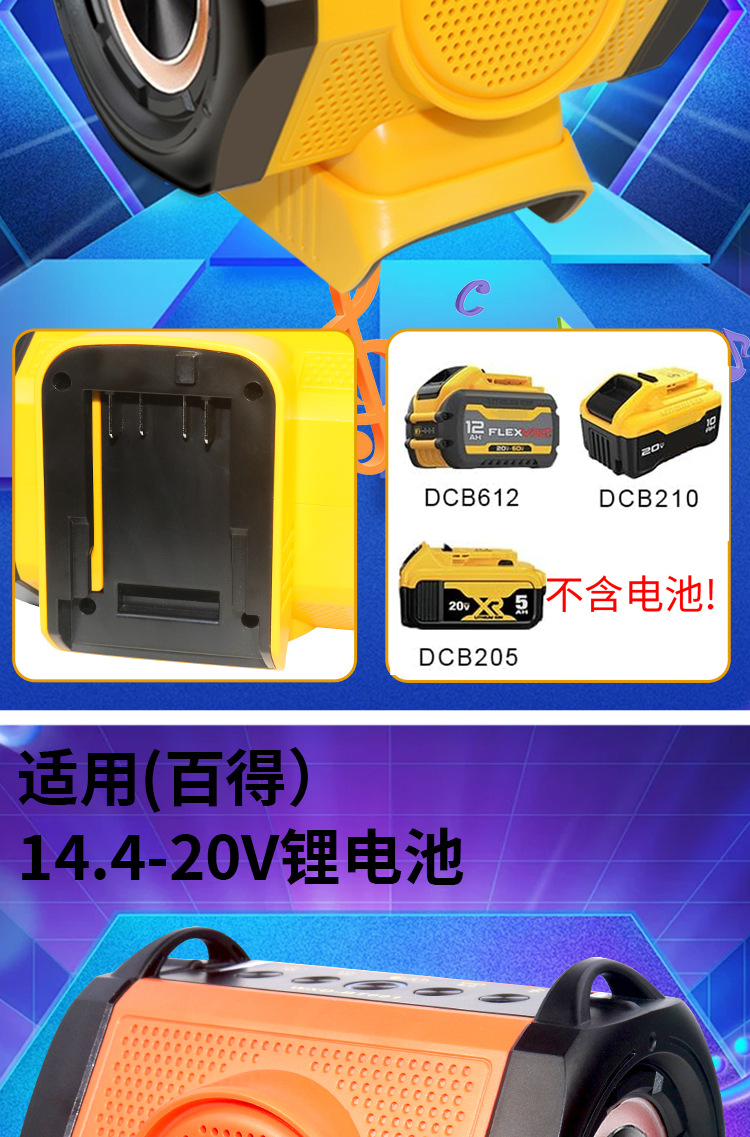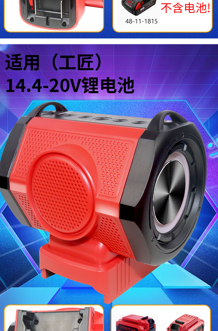 音箱带HIFI蓝牙USB Type-C充电适用牧田德伟米沃奇18-21V工具电池