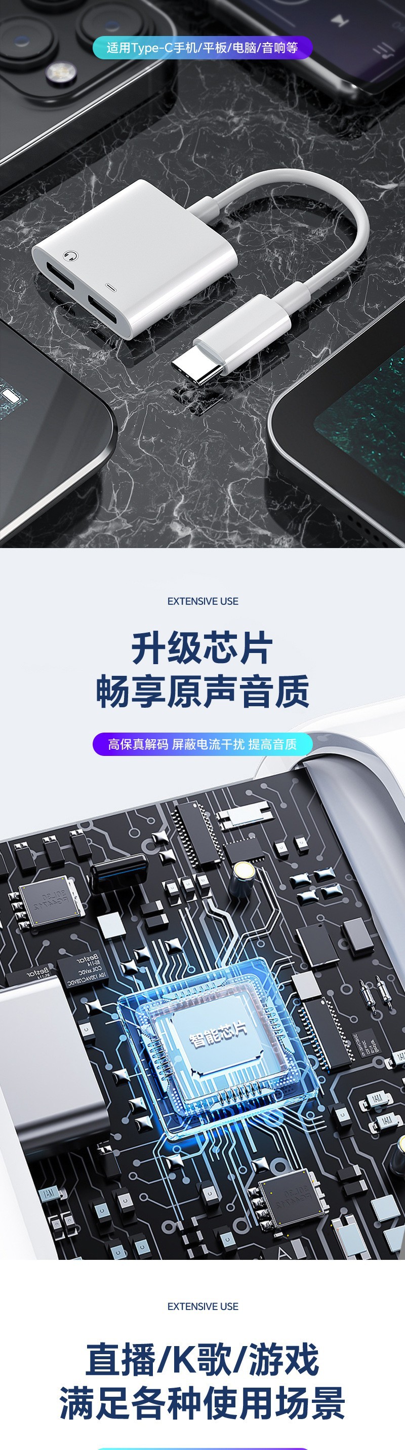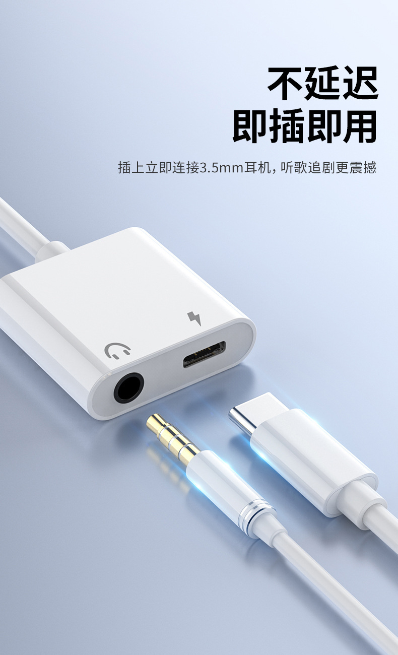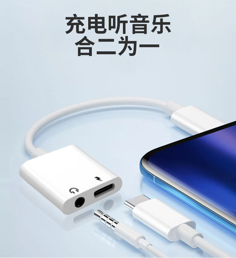 适用于Type-c转3.5耳机转接头充电听歌二合一转换器数字音频转接