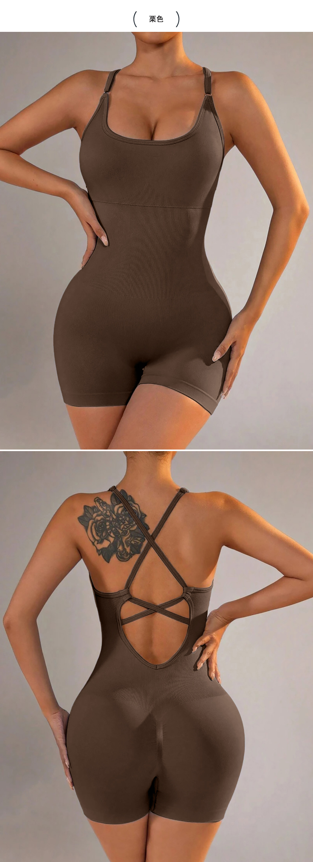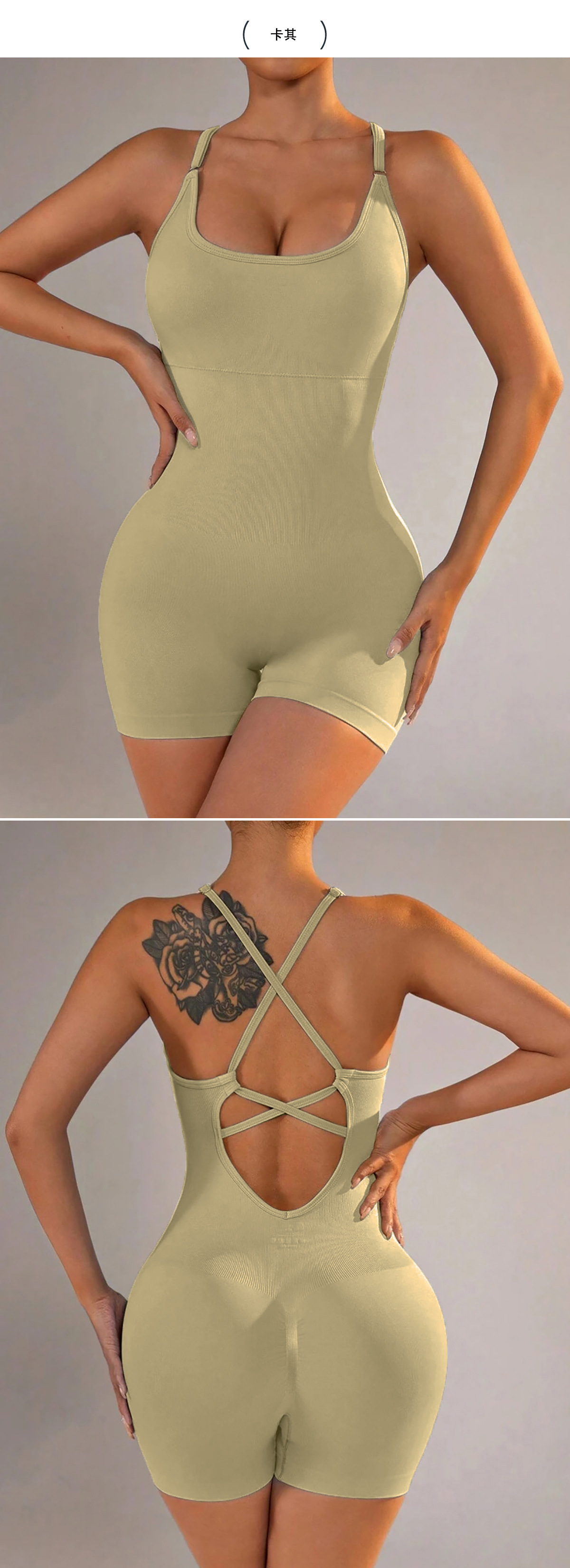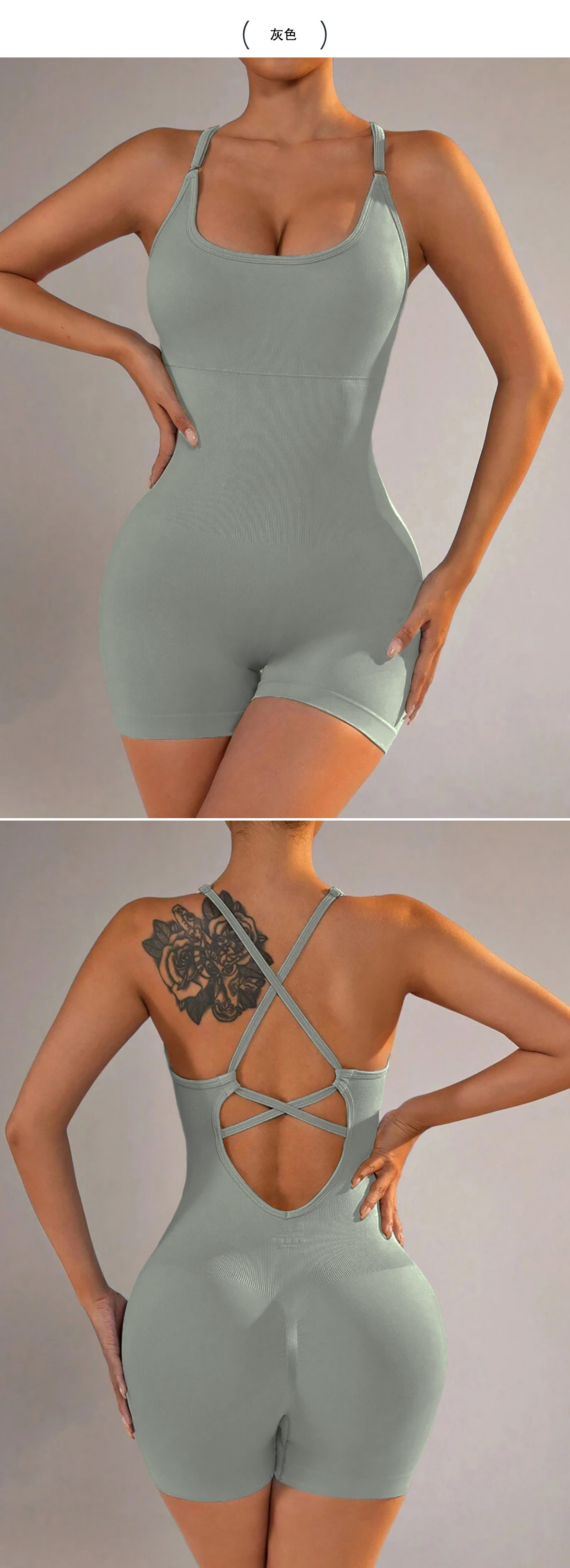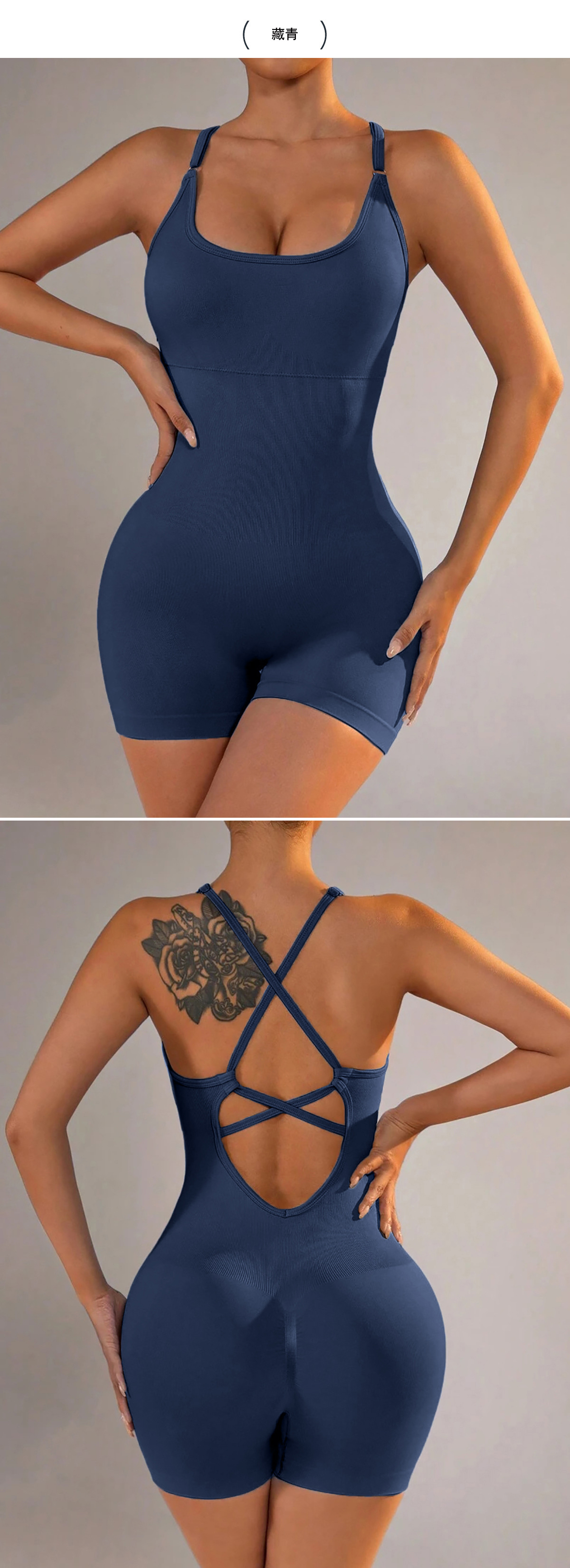 跨境欧美背心式瑜伽连体衣短裤性感包臀一体式新款运动连体衣裤女