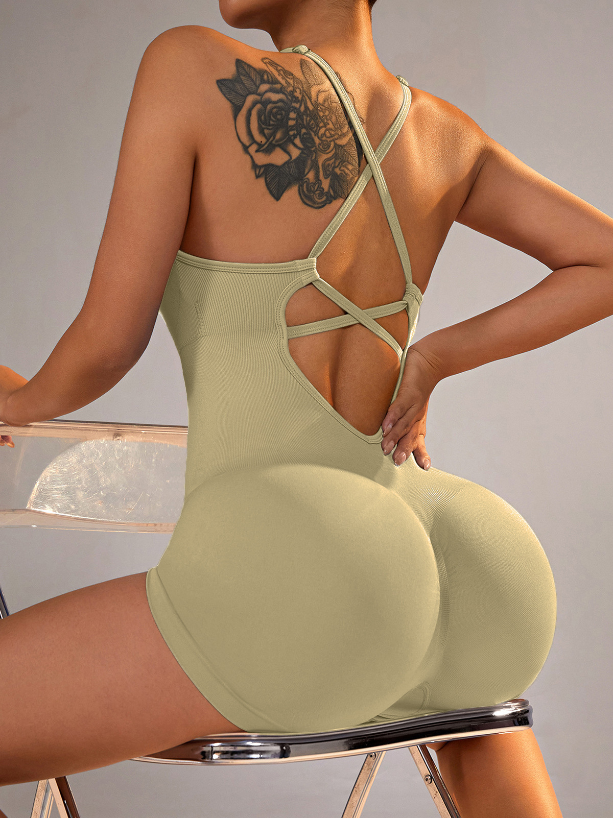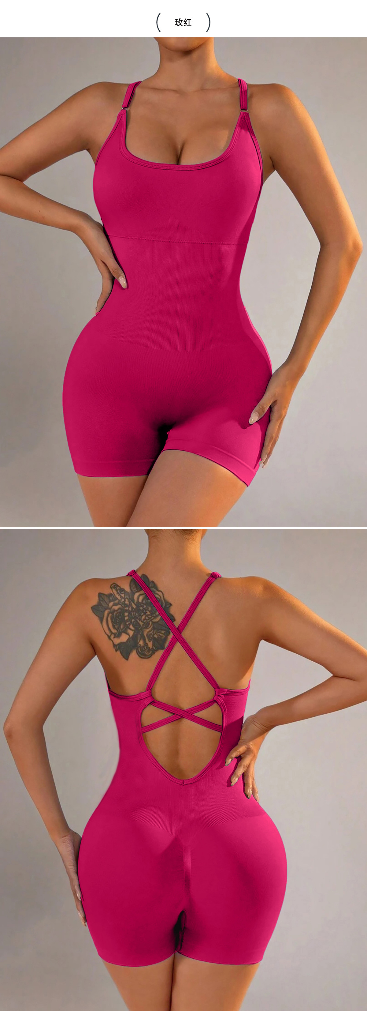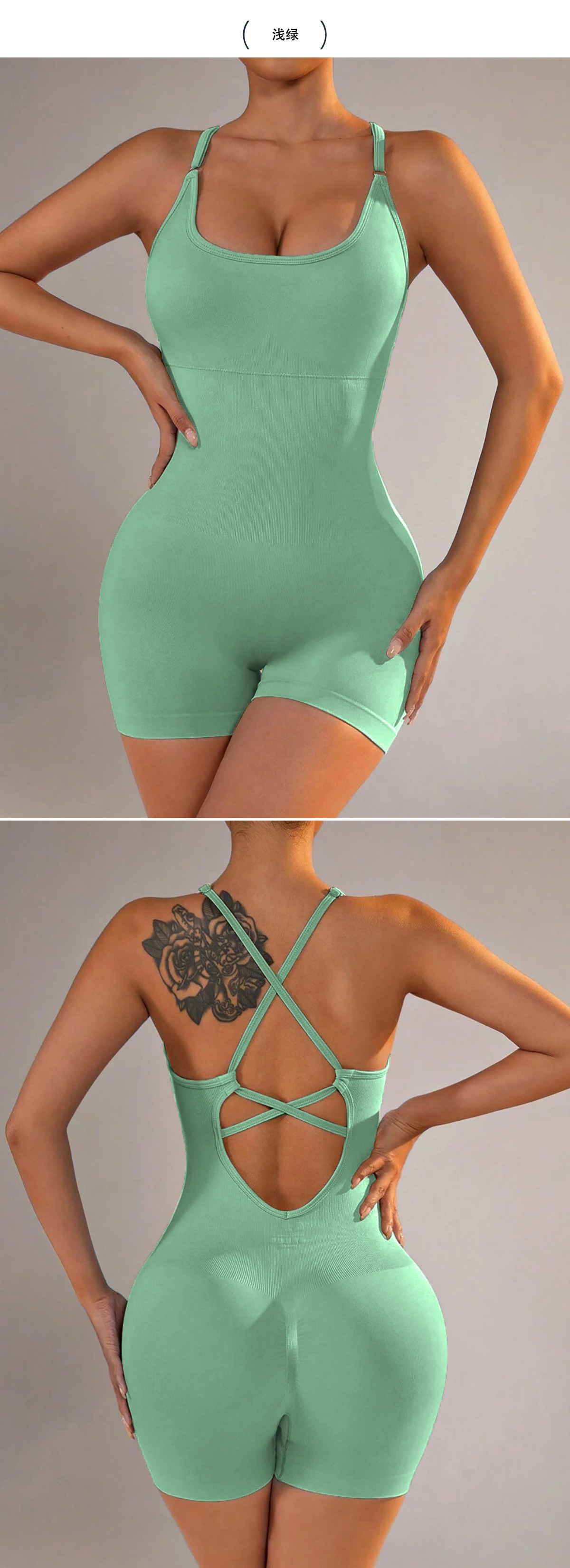 跨境欧美背心式瑜伽连体衣短裤性感包臀一体式新款运动连体衣裤女