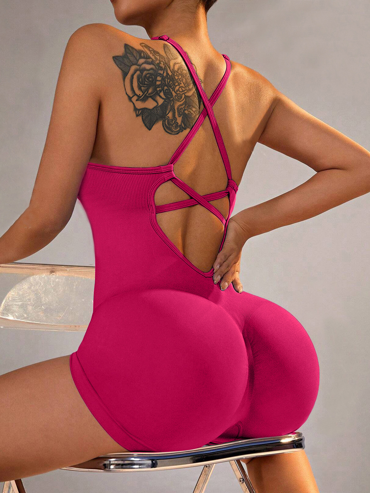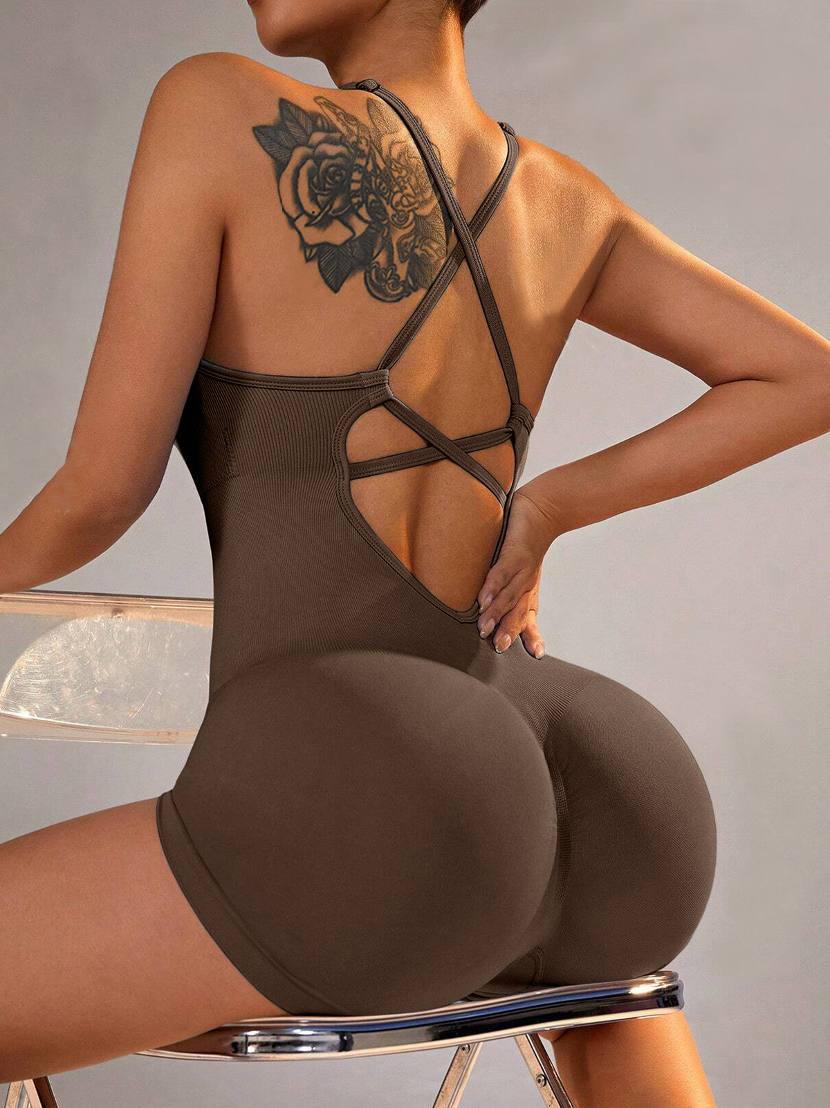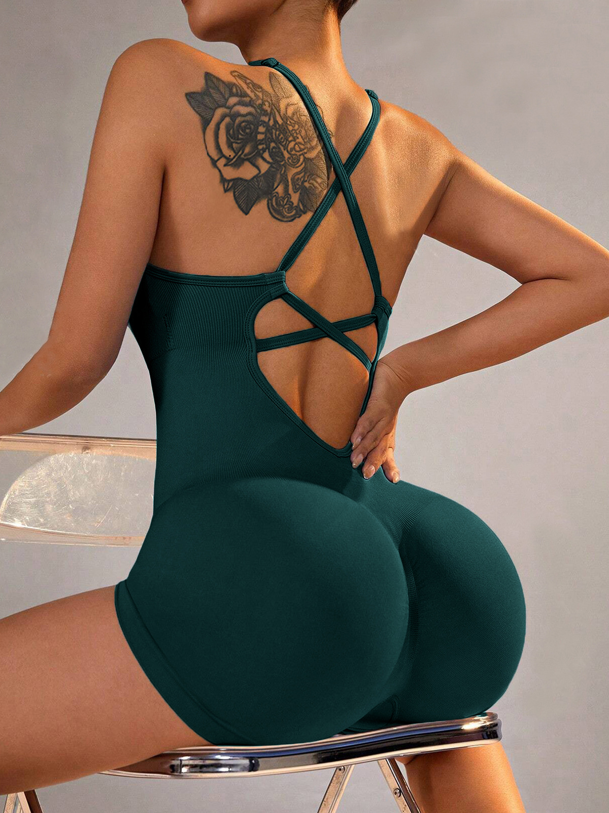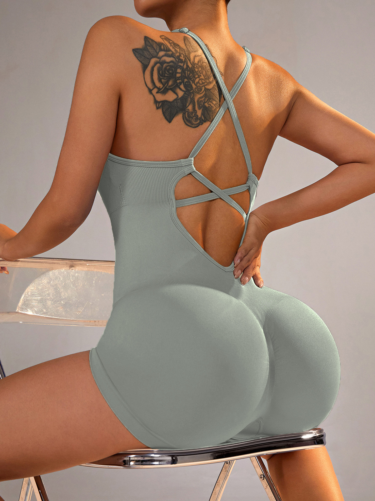 跨境欧美背心式瑜伽连体衣短裤性感包臀一体式新款运动连体衣裤女