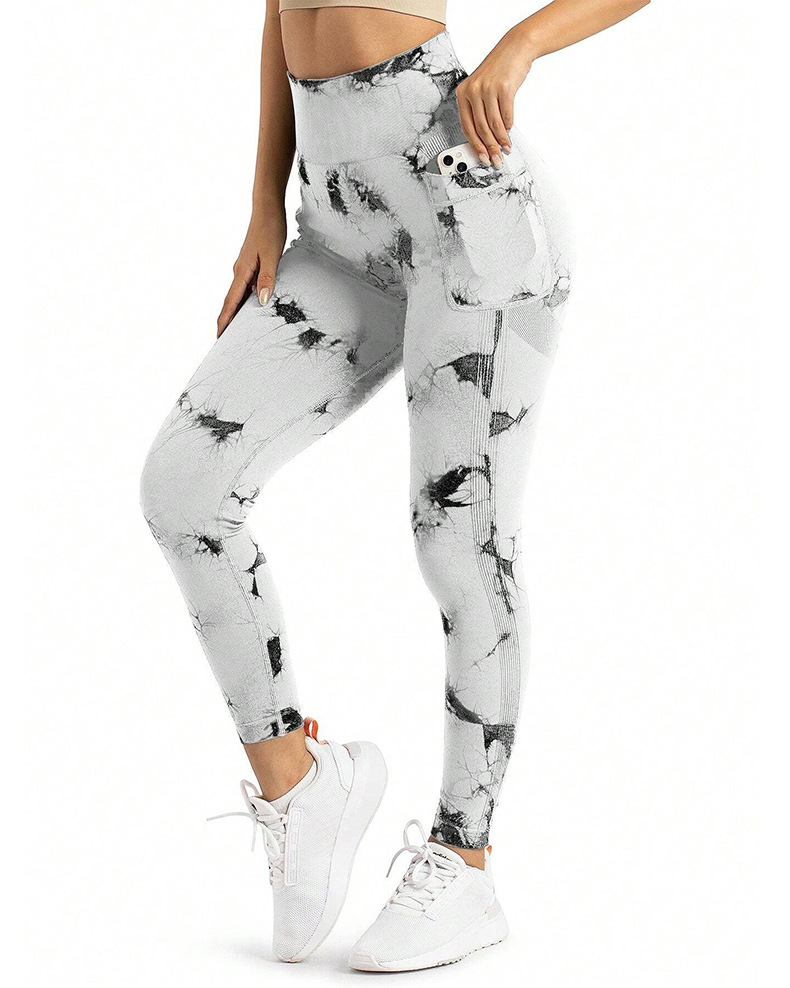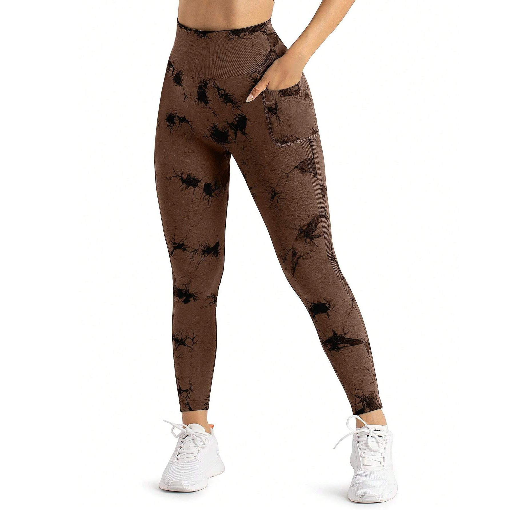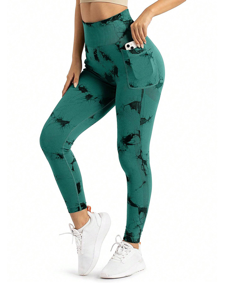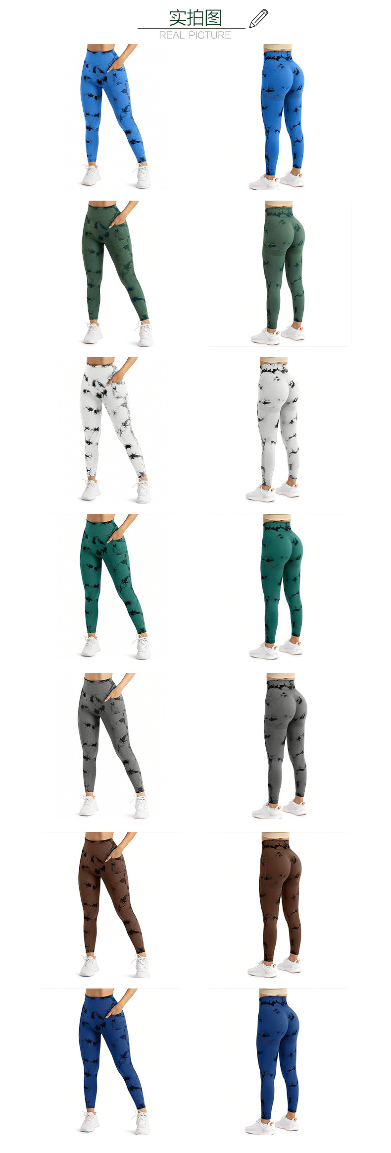 跨境新款扎染侧口袋瑜伽裤长款裸感跑步运动健身服提臀瑜伽长裤女