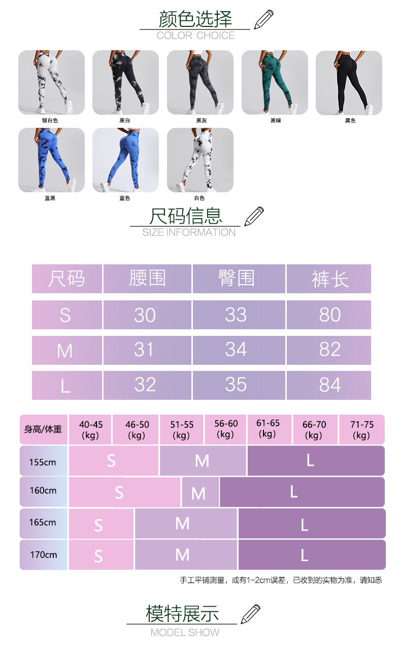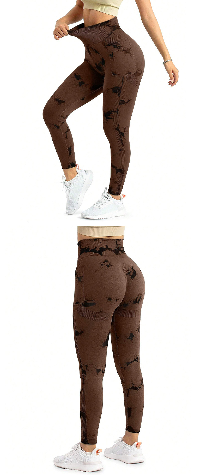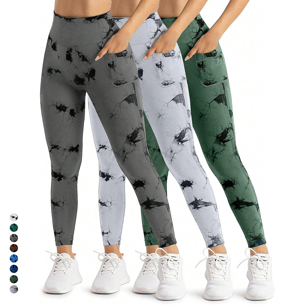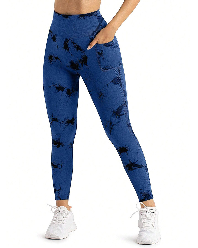 跨境新款扎染侧口袋瑜伽裤长款裸感跑步运动健身服提臀瑜伽长裤女