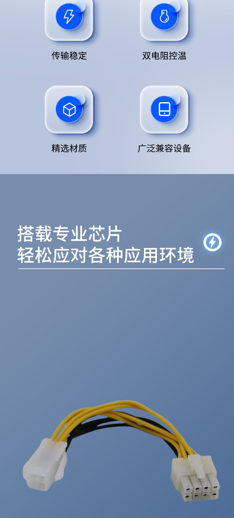 ATX机箱电源线显卡电源转接头8p转4p 主板cpu线 5557 4p转8p