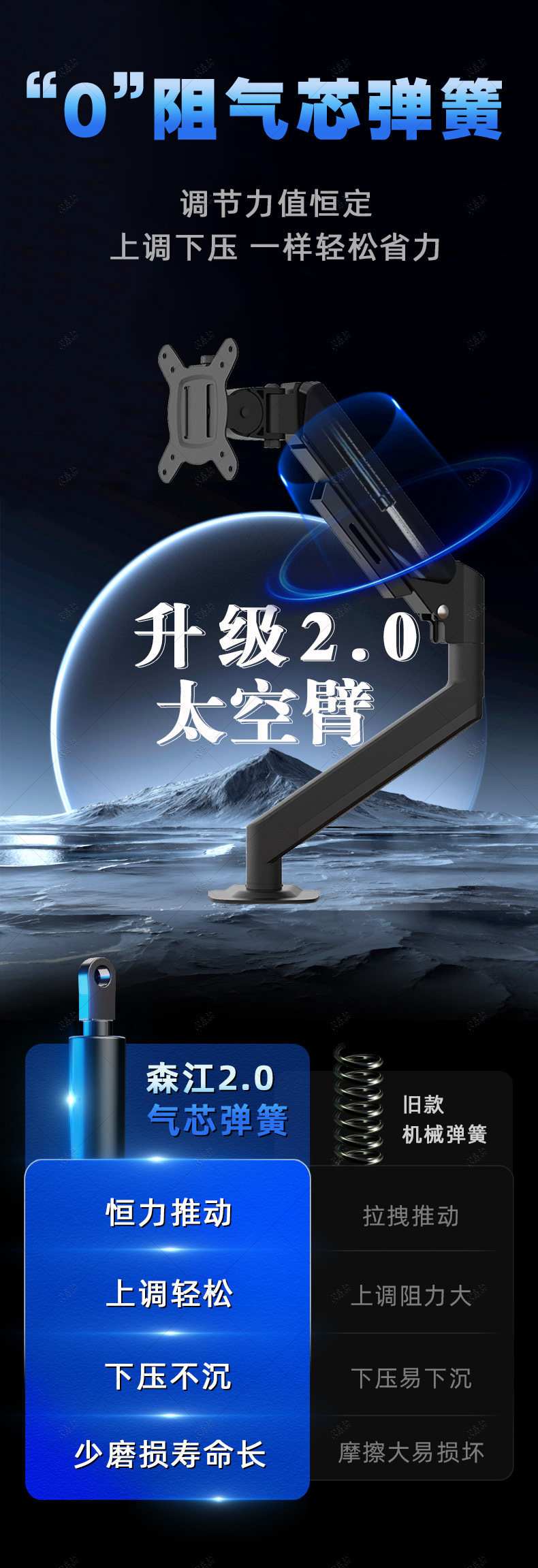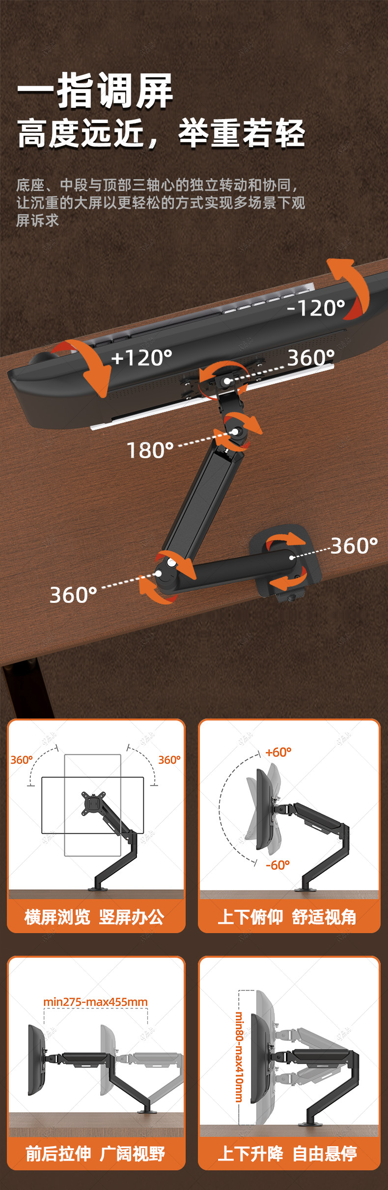 森江PS显示器支架台式电脑支架气弹簧升降机械臂显示屏支架引力架