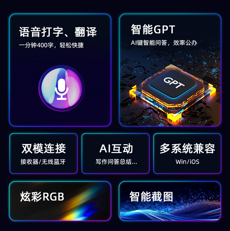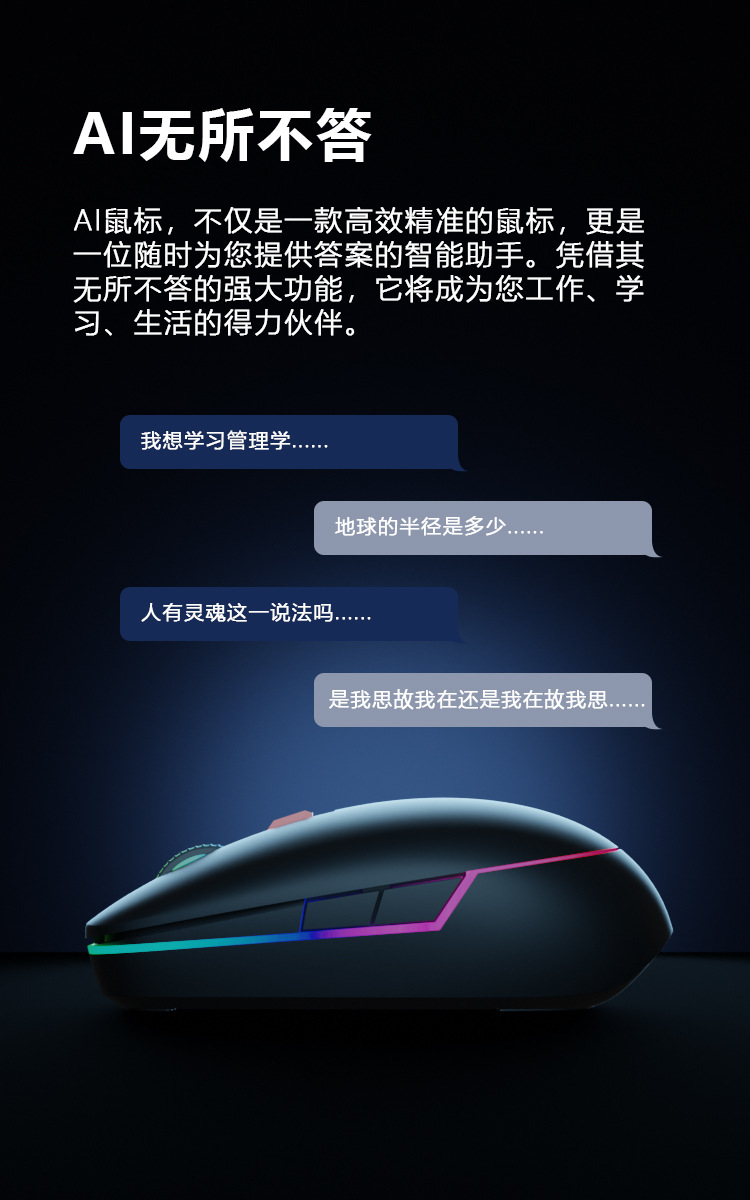 AI智能语音鼠标 双模充电RGB鼠标 智能GPT 星火大模型鼠标