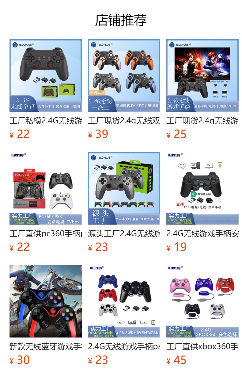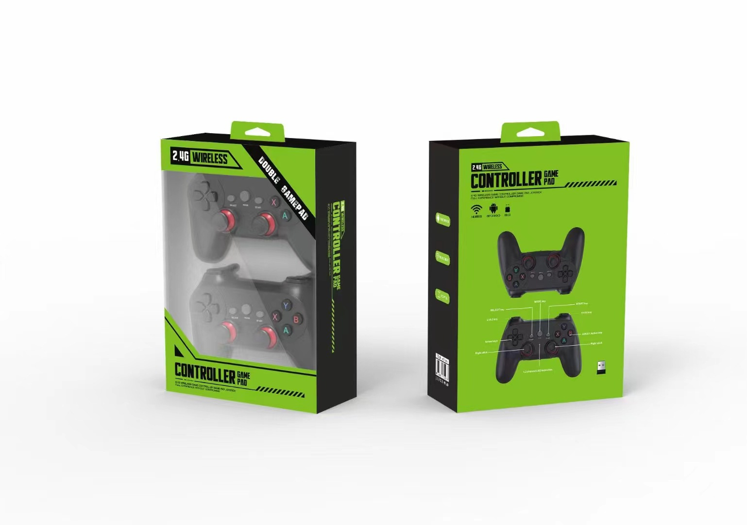 工厂批发 2.4g无线游戏手柄一拖二双人双打安卓电视电脑TV PC手柄