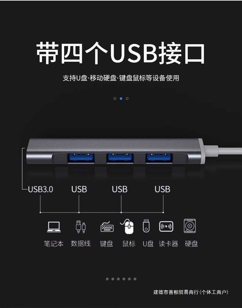 USB3.0扩展器笔记本Typec拓展坞多口分线器转接头扩展坞集分线延