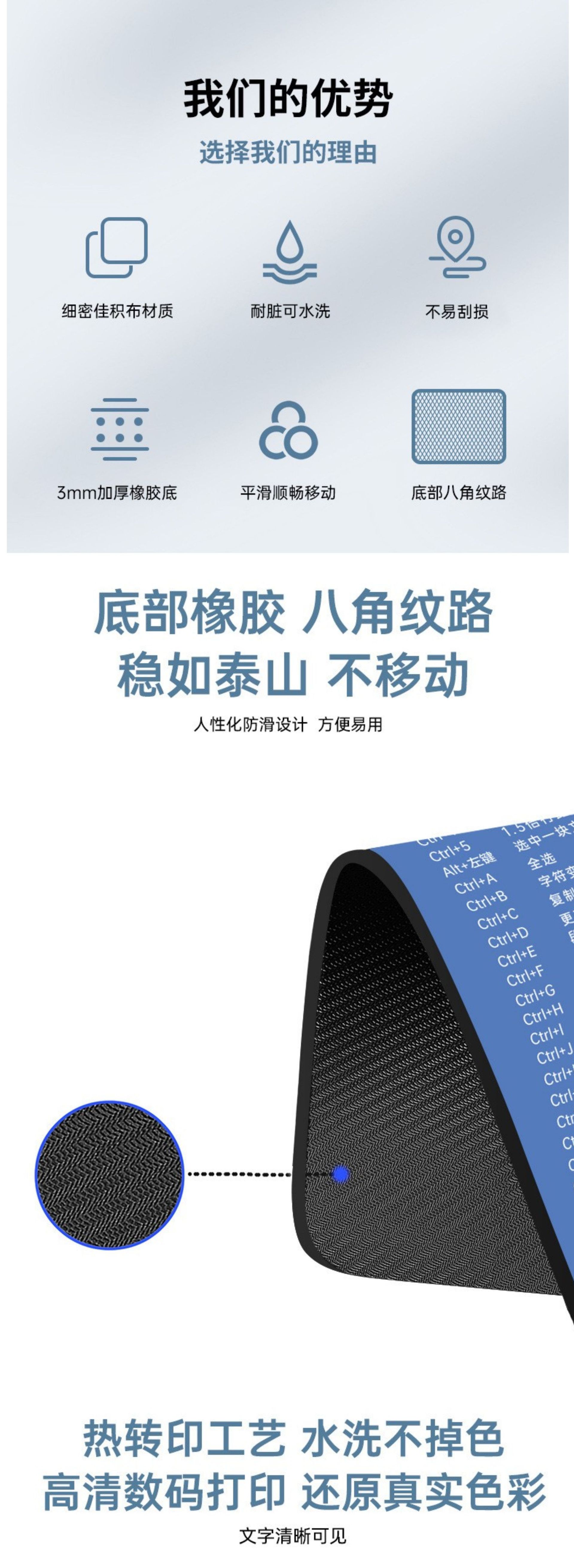 鼠标垫定制广告电商网吧游戏大号加厚彩色卡通锁边快捷键键盘桌垫