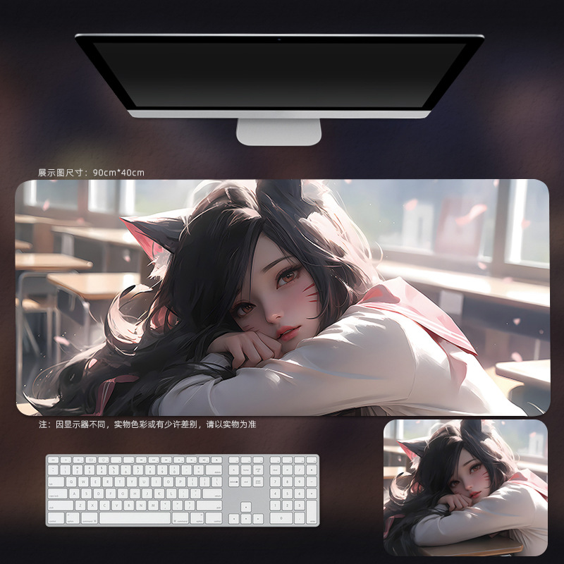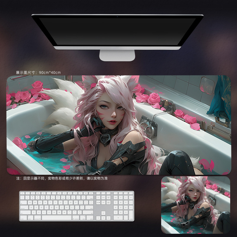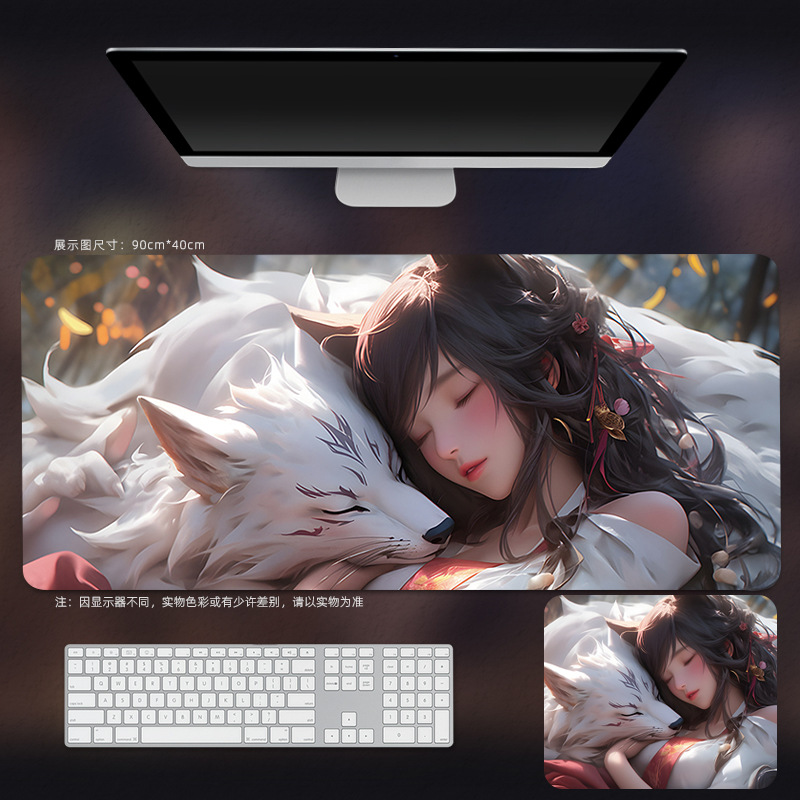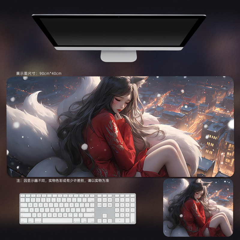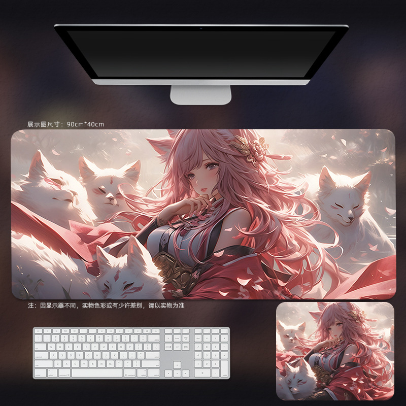 九尾狐鼠标垫超大号男生电竞游戏美女动漫二次元电脑键盘禁欲桌垫