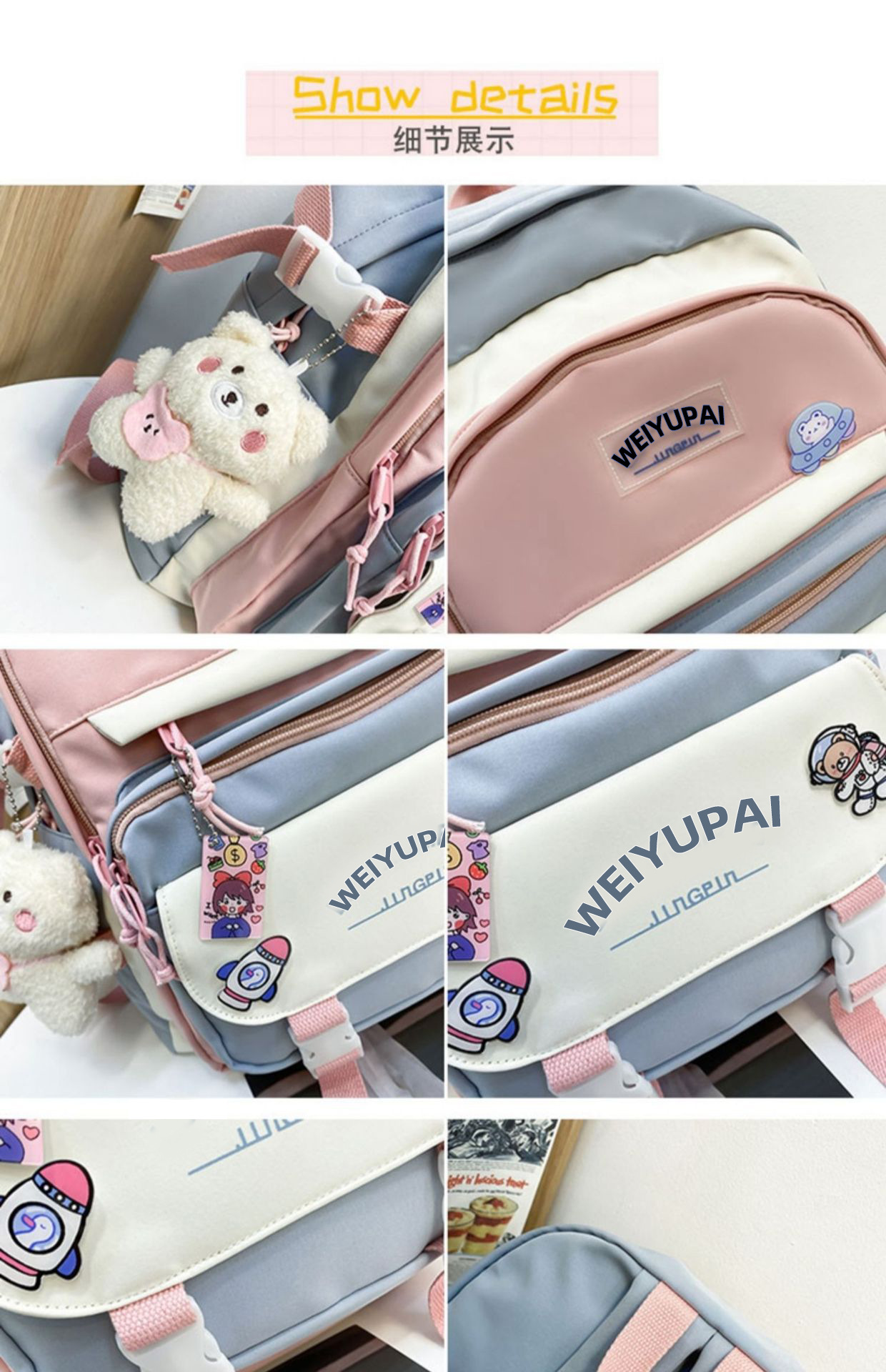 | blue backpack + pendant(蓝色双肩+挂件) | USD $5.02 | 9909 piece available |