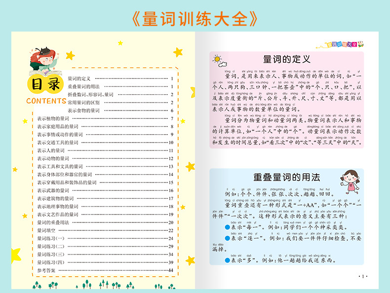 小学生语文重叠词叠词量词aabb式词语近反义词组词造句专项练习册