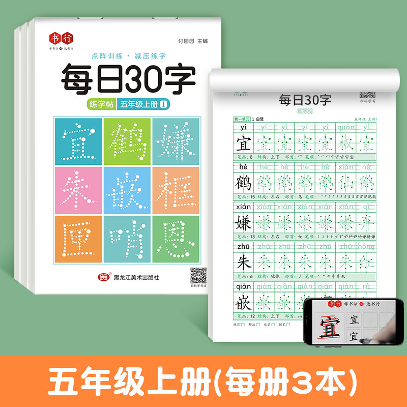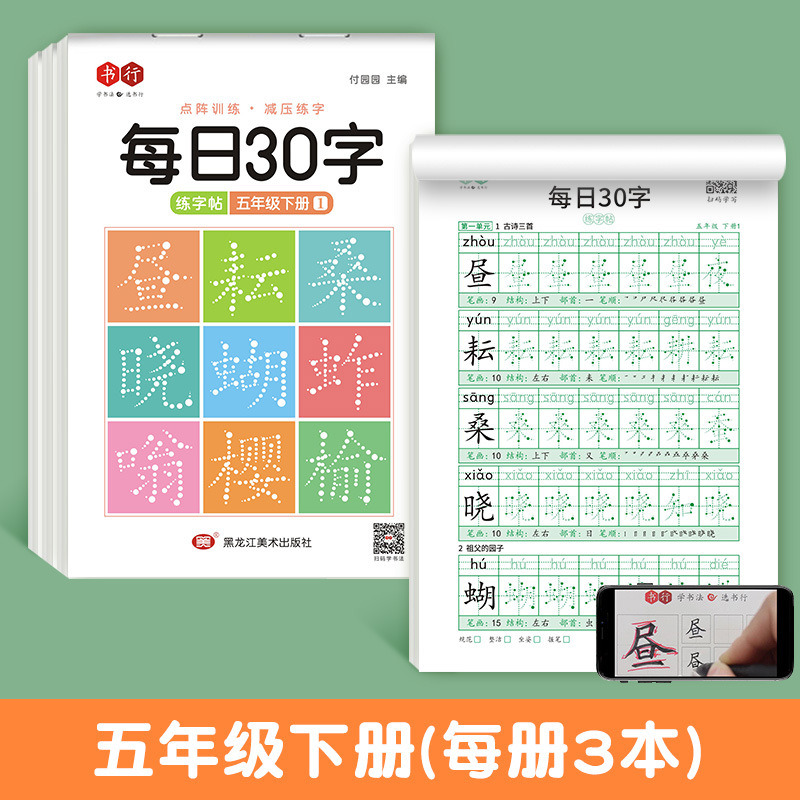 【减压同步练字帖】每日30字小学生1-6年级语文生字点阵描红练习