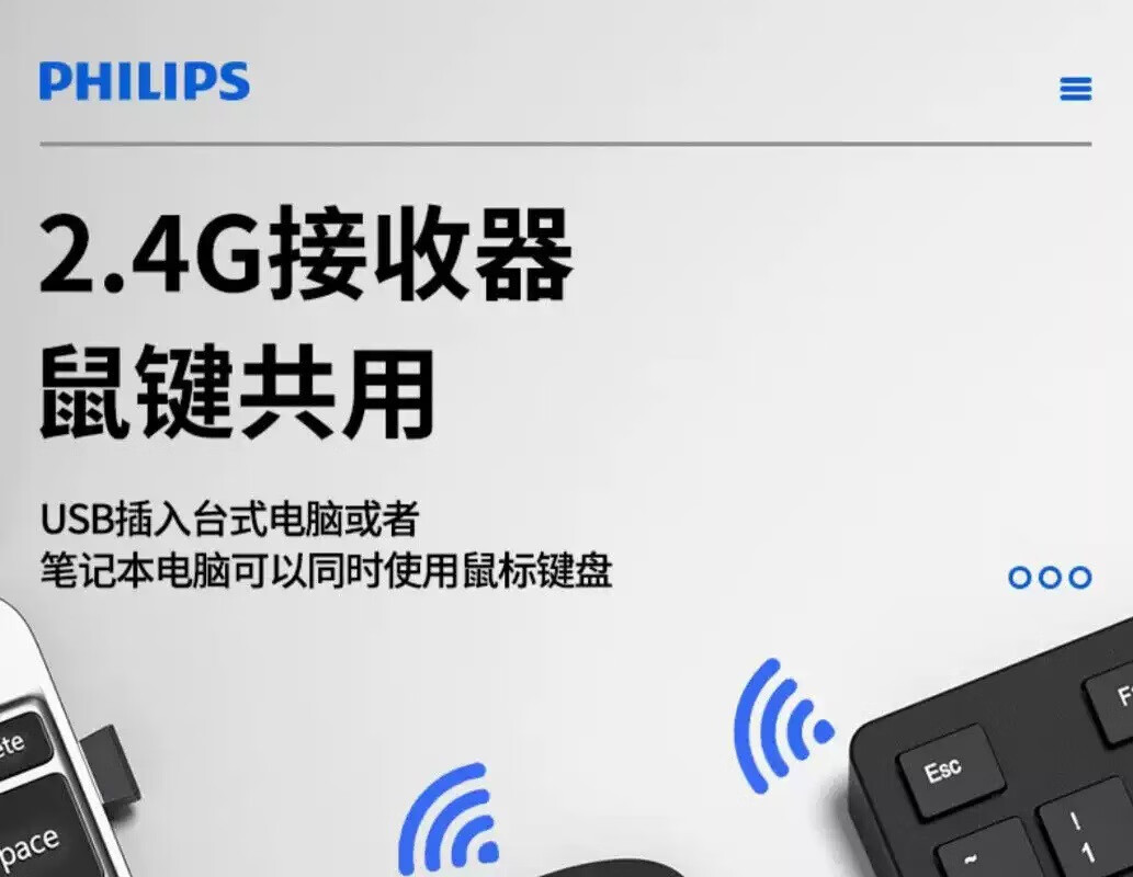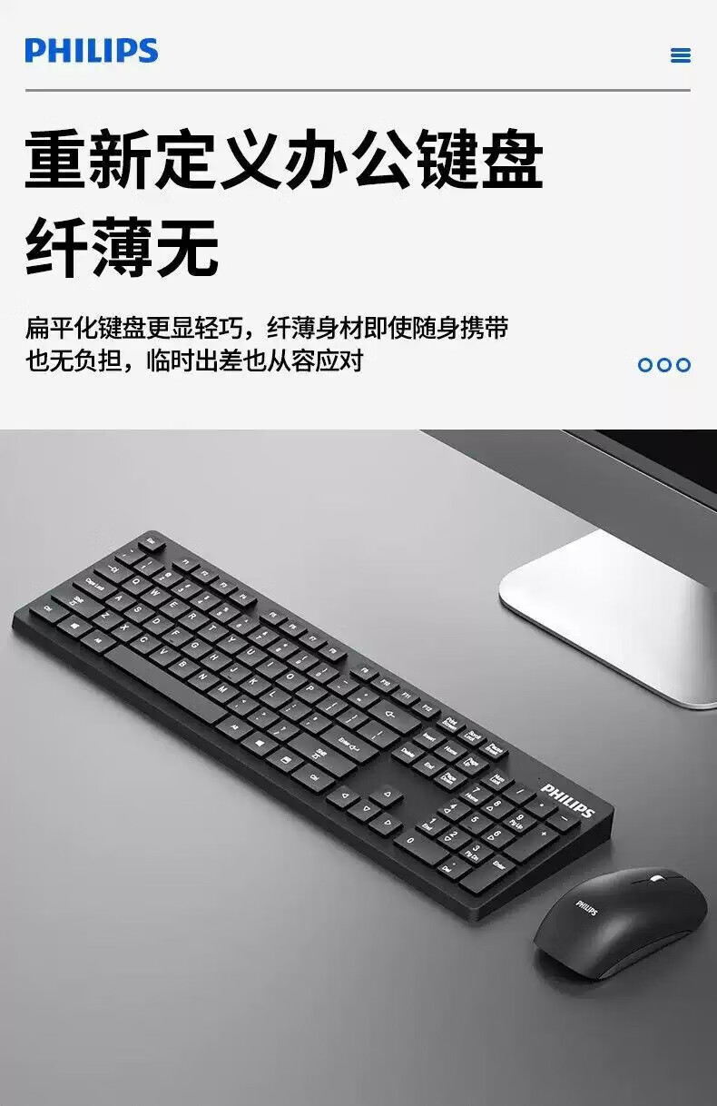飞利浦 SPT6602无线办公键盘鼠标套装防水台式笔记本电脑USB键鼠