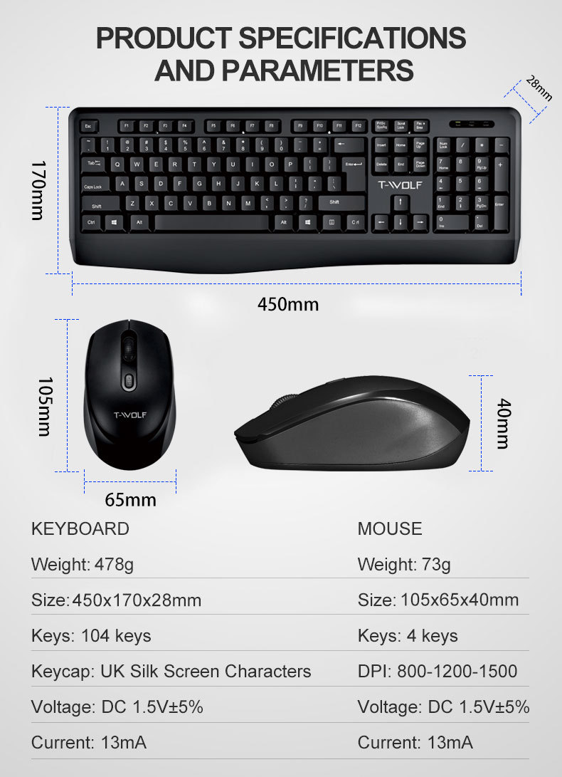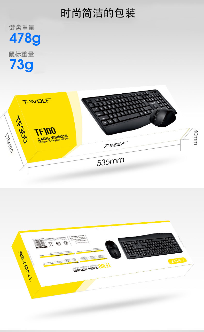 T-WOLF雷狼TF-100无线键盘鼠标套装2.4G笔记本电脑办公键鼠跨境