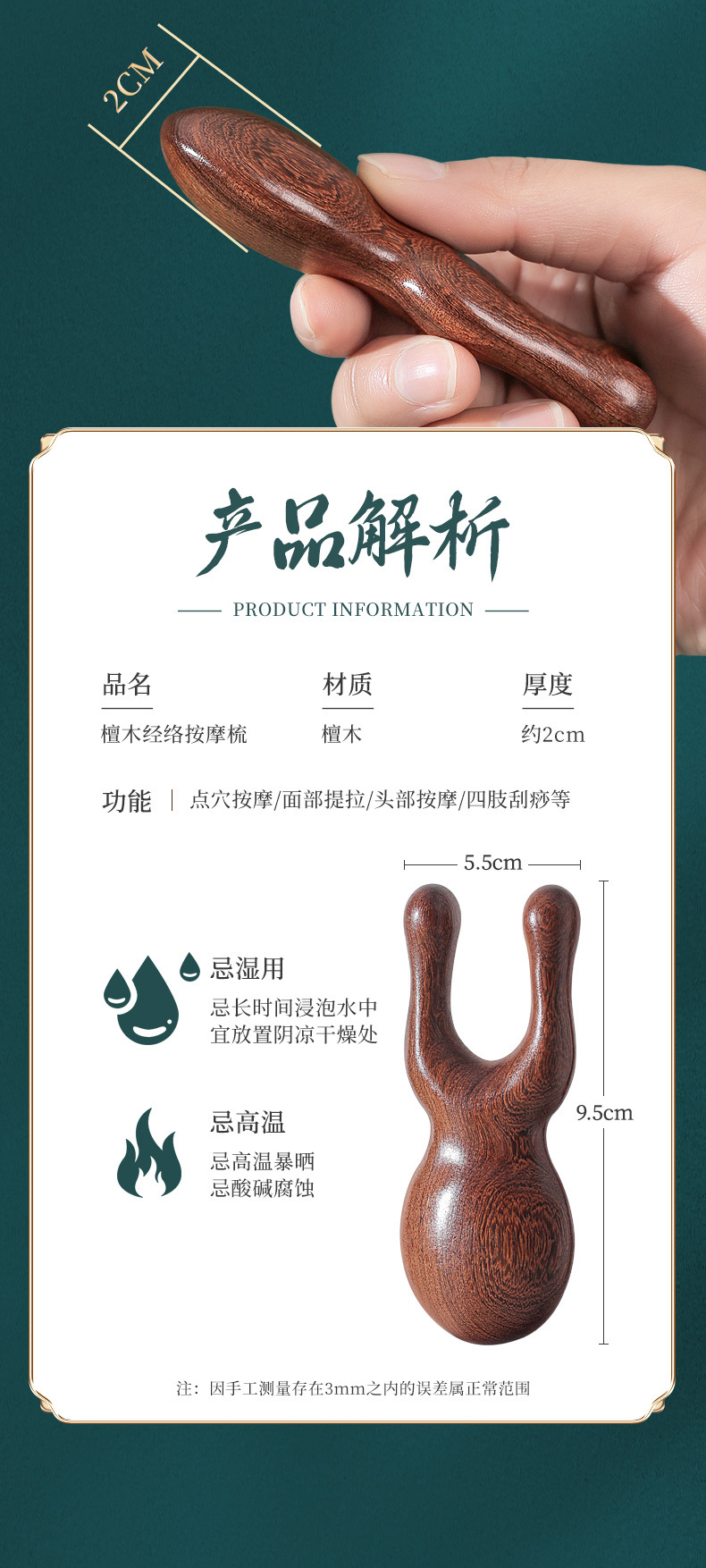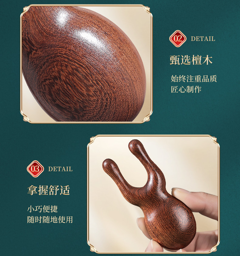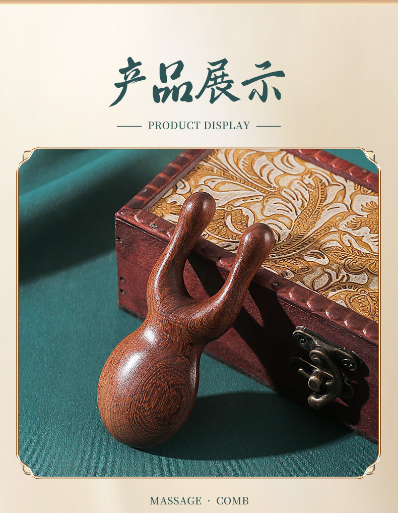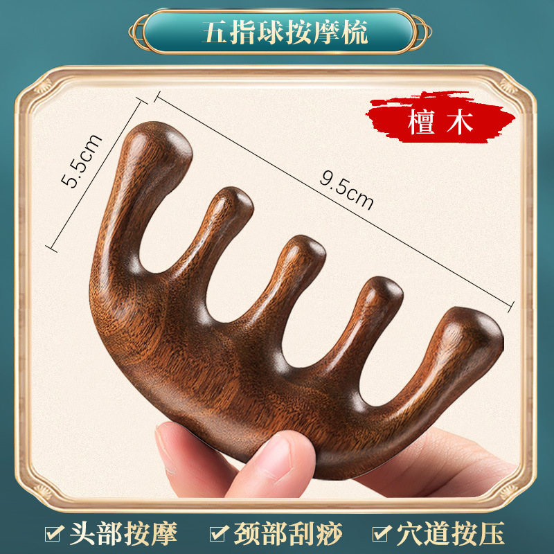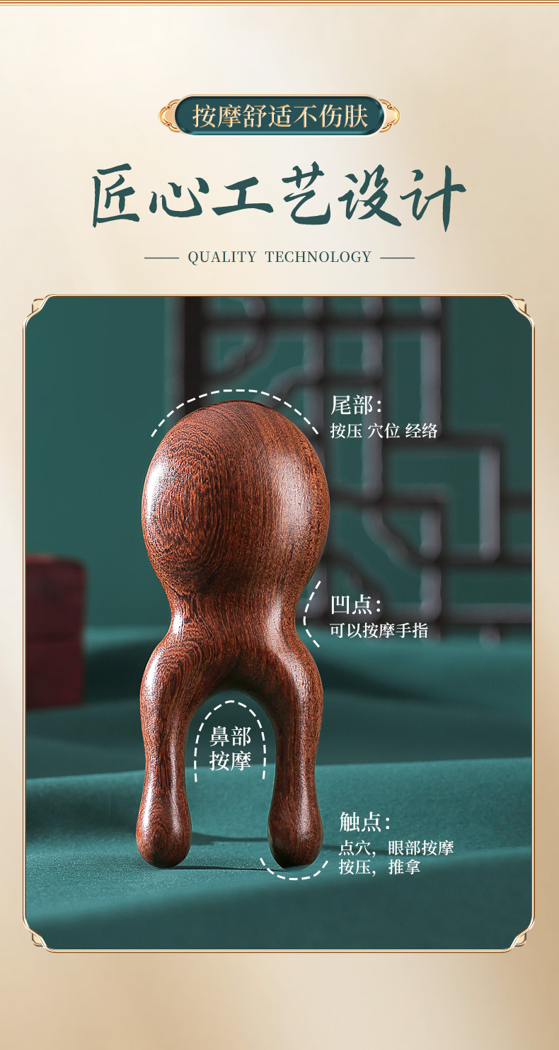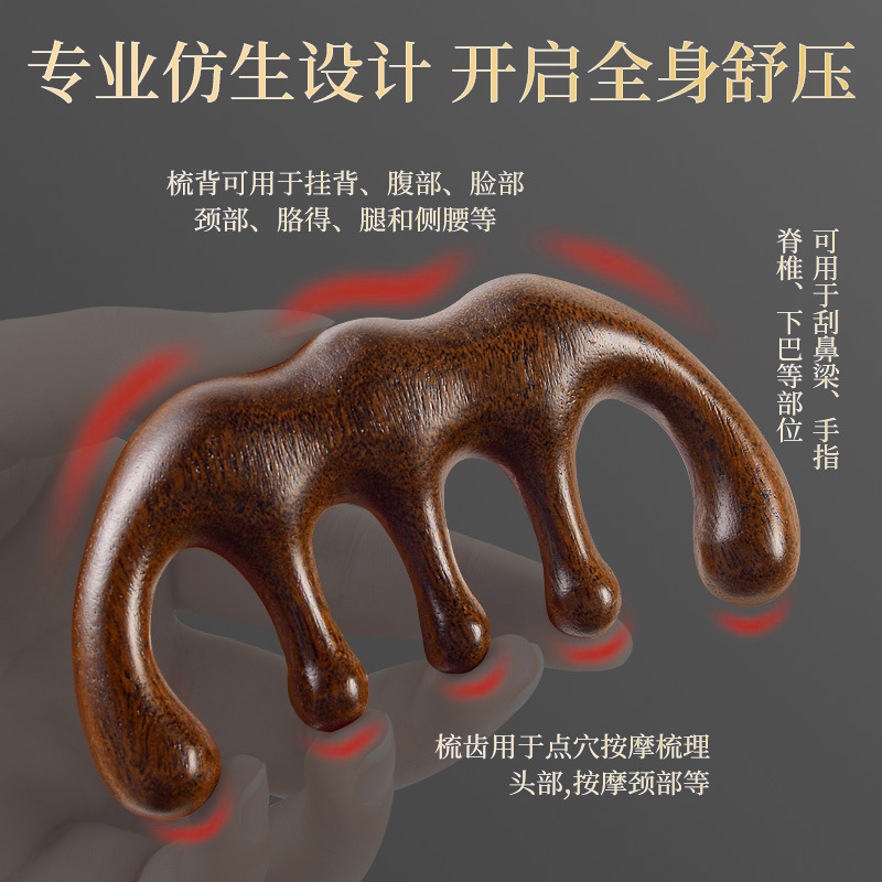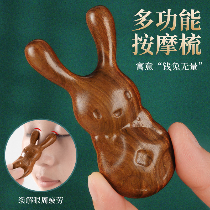 檀木护眼利器眼周小青蛙按摩器刮鼻器梳子面部拨筋棒经络按摩梳