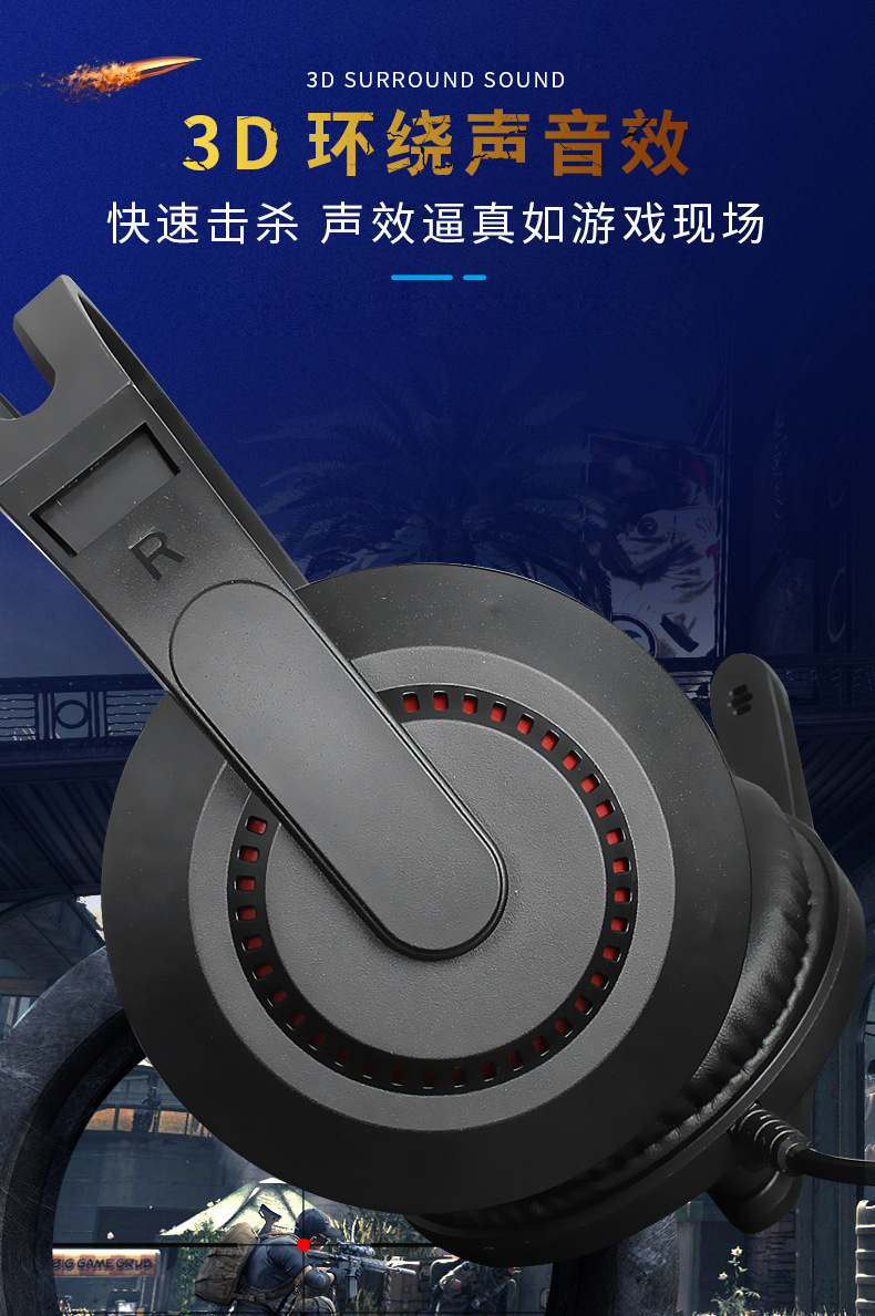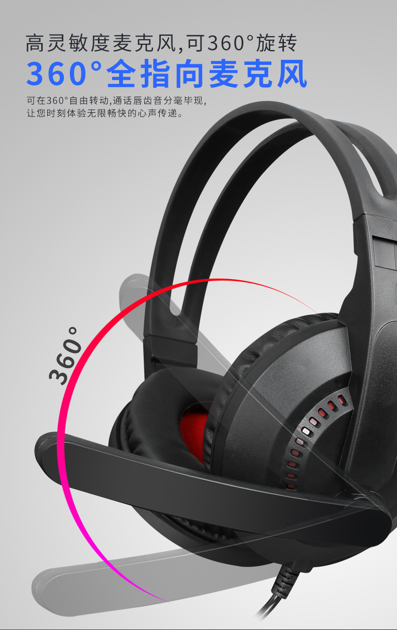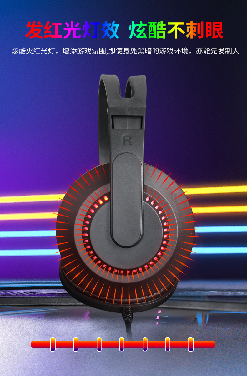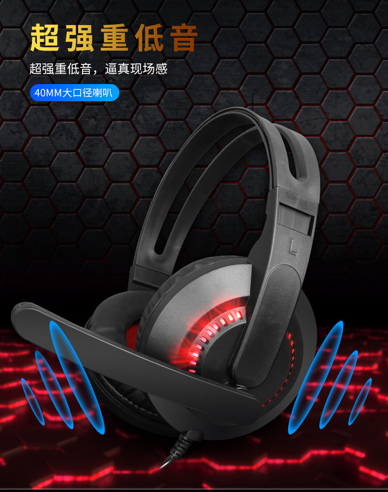 A2跨境电商电脑电竞耳机头戴式有线网课发光游戏耳麦话务学习