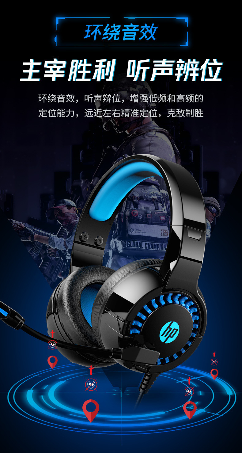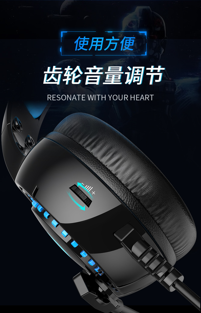DHE8011有线发光耳机头戴式耳麦网吧吃鸡游戏办公电脑3.5mm口降噪