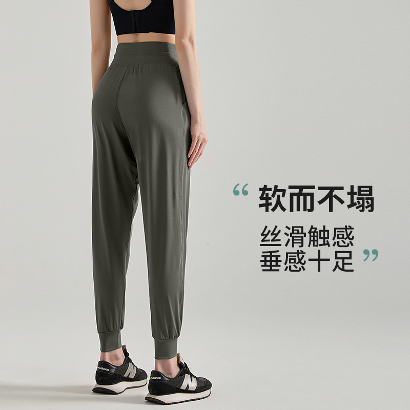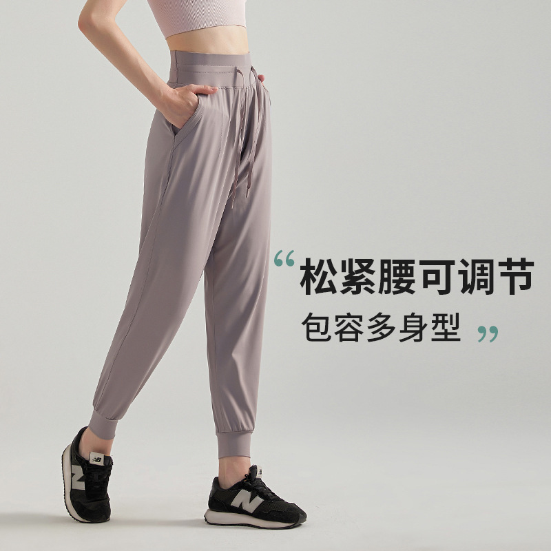 春秋宽松瑜伽裤束脚抽绳收腹高腰健身速干透气宽松版运动裤女