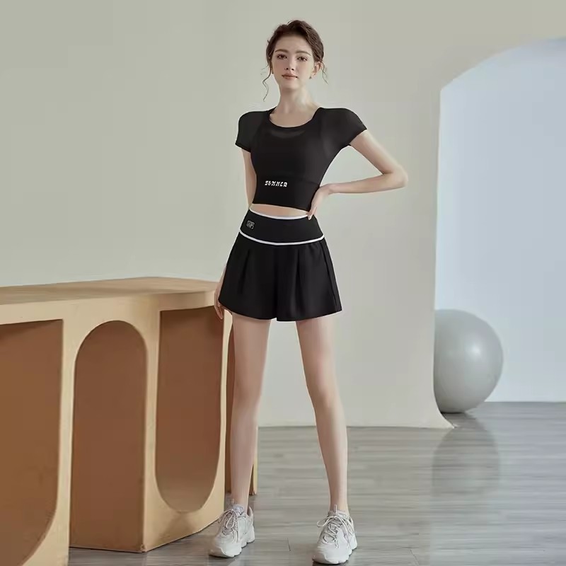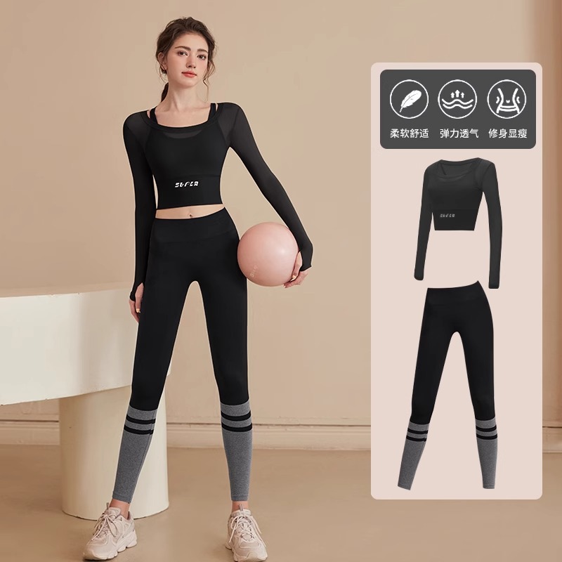 瑜伽服女长袖新款夏季透气上衣普拉提训练跑步假两件运动健身服