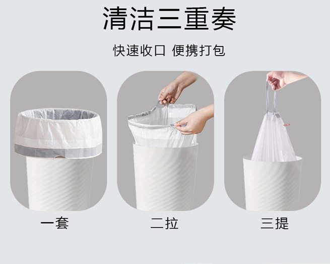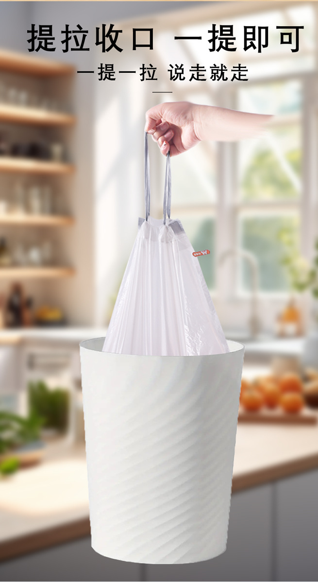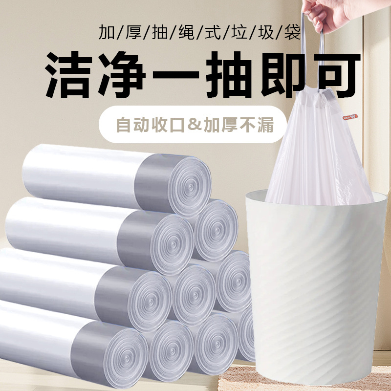 抽绳式垃圾袋家用加厚手提厨房宿舍用学生大号白色塑料袋提拉收口