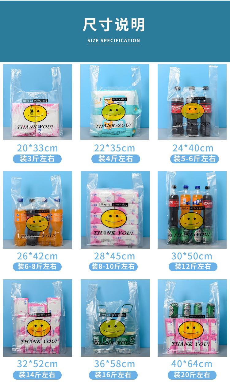 塑料袋批发超市购物袋一次性外卖打包透明背心袋加厚手提笑脸袋