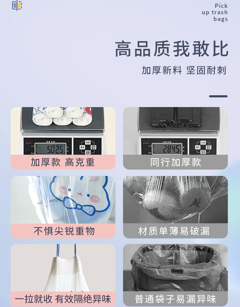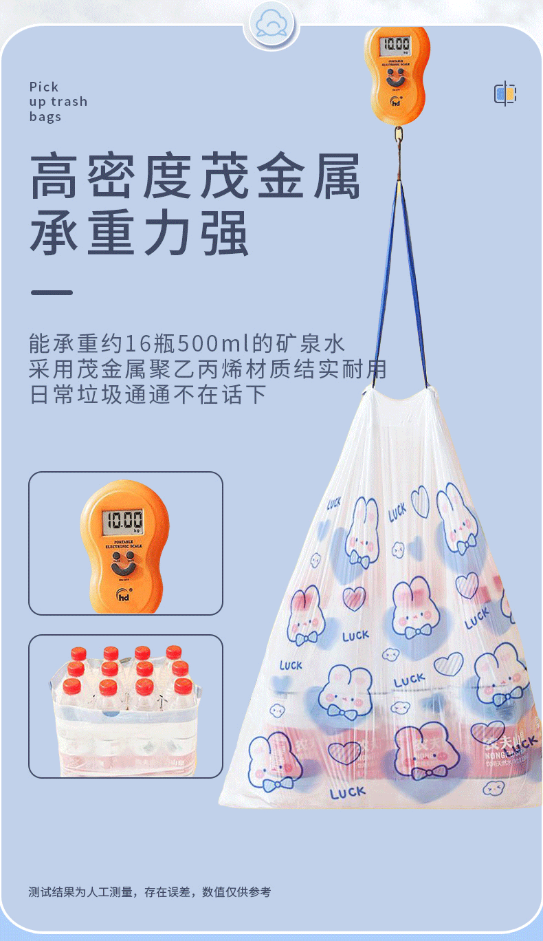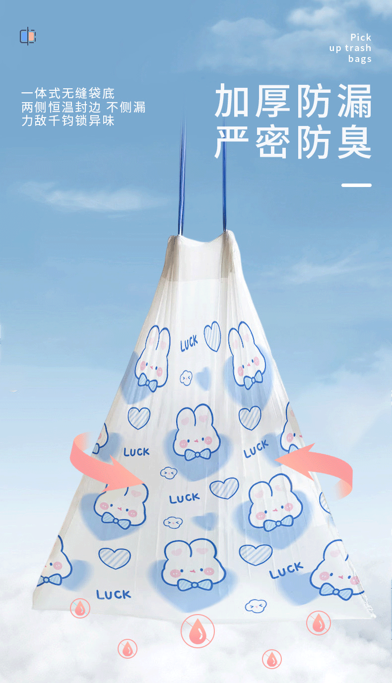蓝心兔垃圾袋可爱家用加厚加大手号提式清洁袋厕所卫生袋抽绳式厚