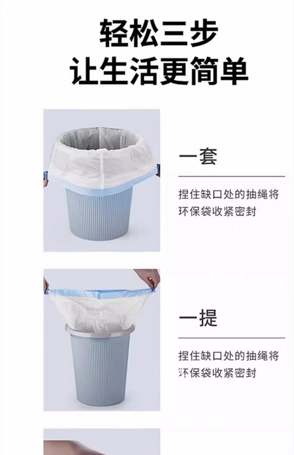 芈奈儿家用大号加厚手提垃圾袋 一次性束口厨房塑料抽绳垃圾袋