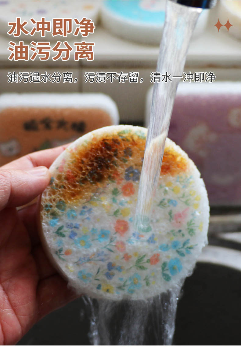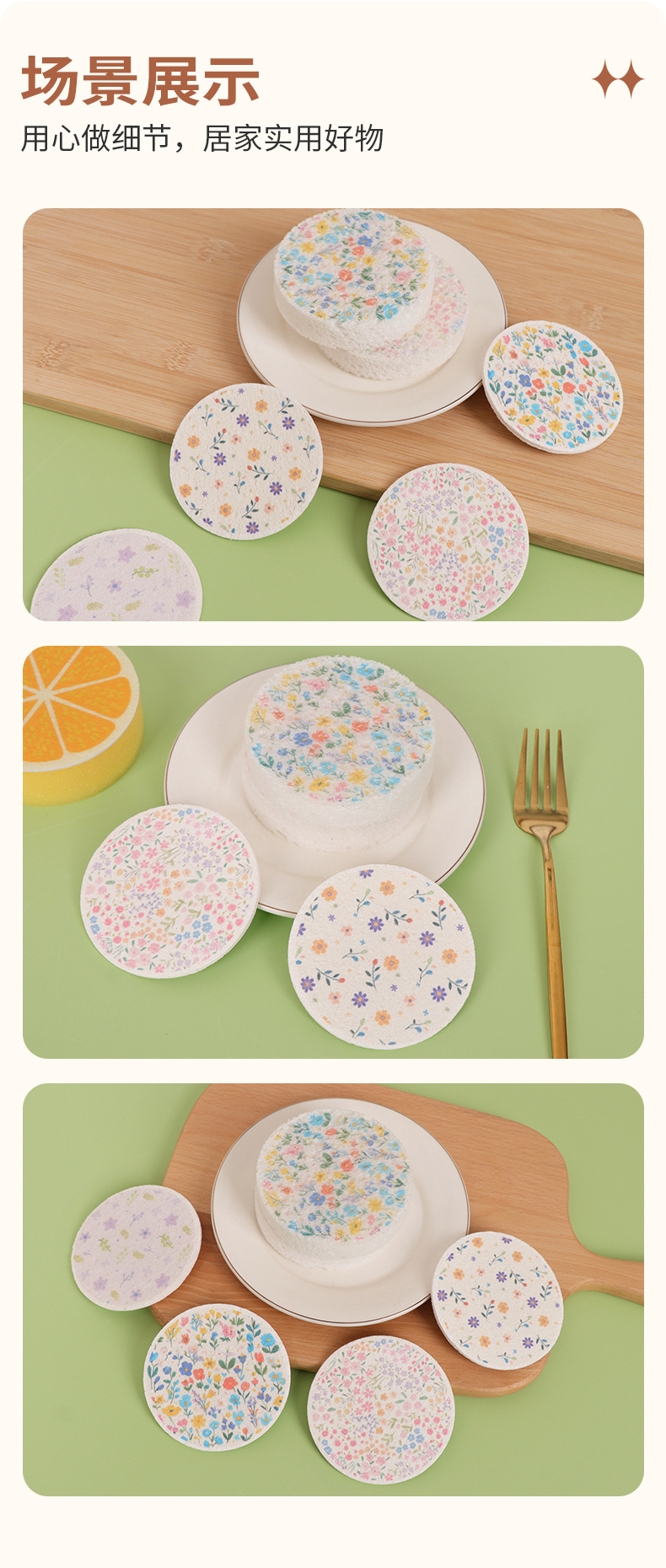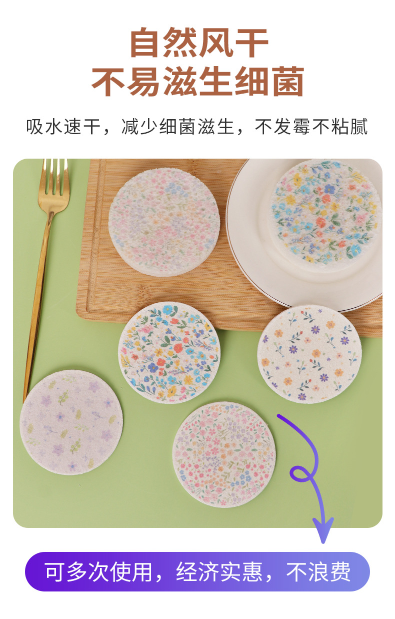 圆形花朵木浆棉海绵擦厨房抹布洗碗棉不沾油吸水压缩木桨海棉工厂