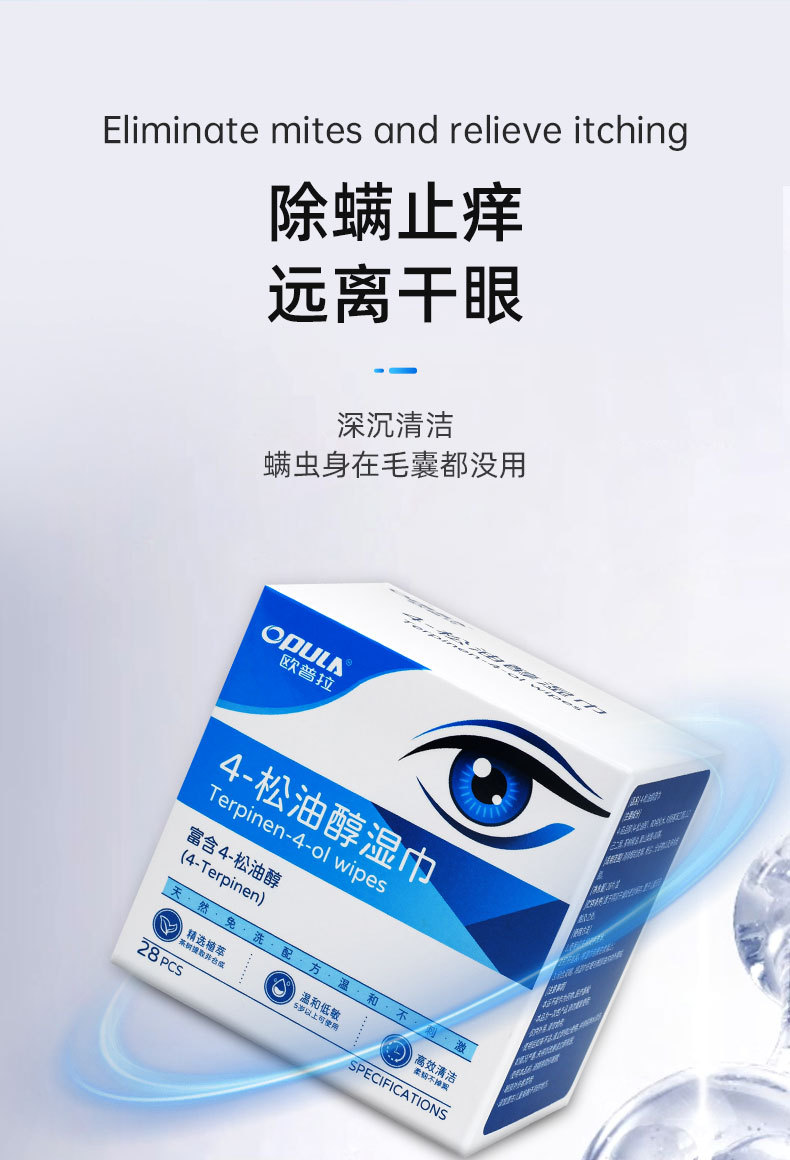 4-松油醇茶树精油眼部除螨清洁湿巾一次性清洁眼睑除螨虫专用湿纸