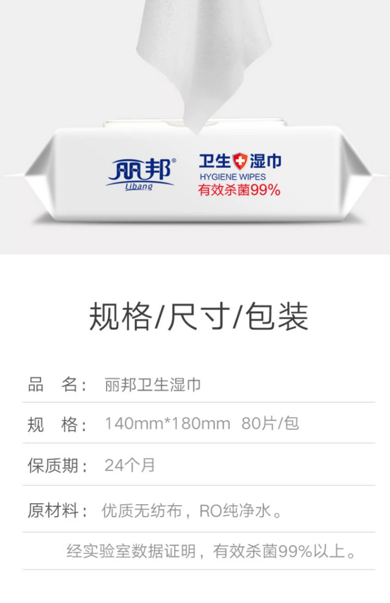 丽邦消毒卫生湿巾清洁杀菌不含酒精一件代发