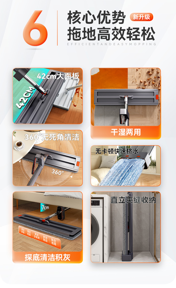 2024新款免手洗平板拖把家用免洗一拖懒人净地拖布拖地神器大墩布