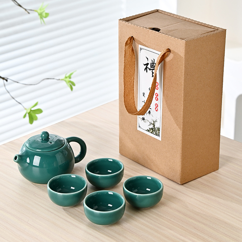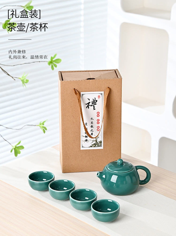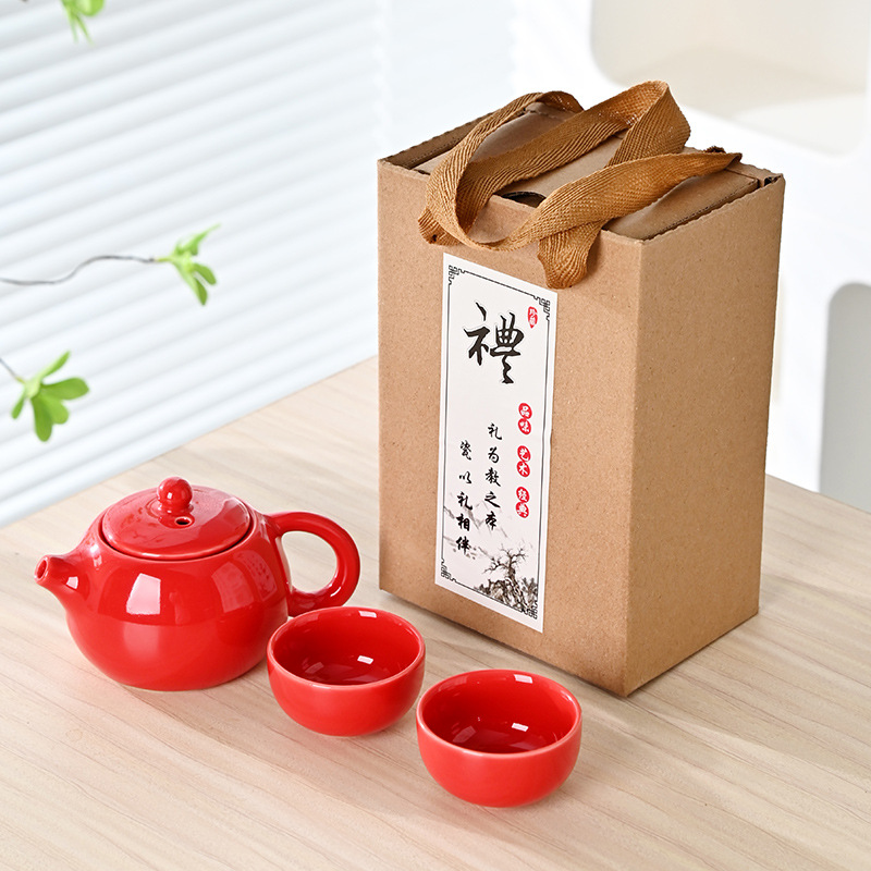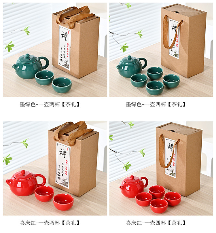 色釉西施壶茶具套装整套小礼品随手礼一壶二杯便携定窑伴手礼陶瓷