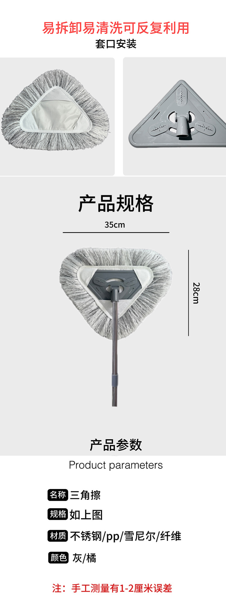 亚马逊热销加长拖把多功能天花板扫除尘拖地洗车雪尼尔三角拖把