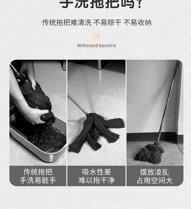 | gray [a set of mop] + folding bucket + two replacement head + mop clip(灰色【一套拖把】+折叠桶+两个替换头+拖把夹) | USD $6.08 | 4999 piece available |