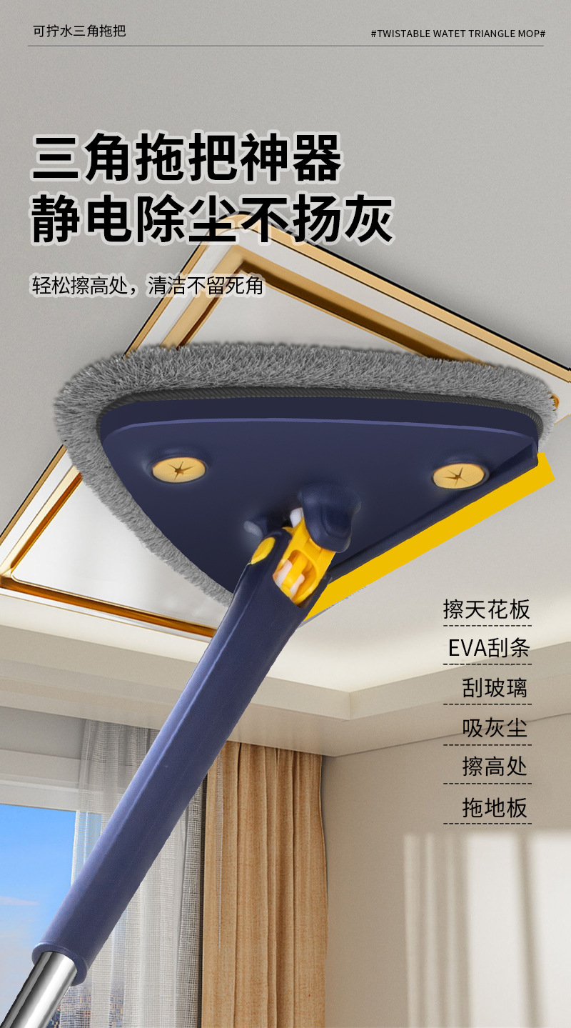三角拧水拖把家用天花板清洁器免手洗擦玻璃墙壁一拖净自拧水拖把