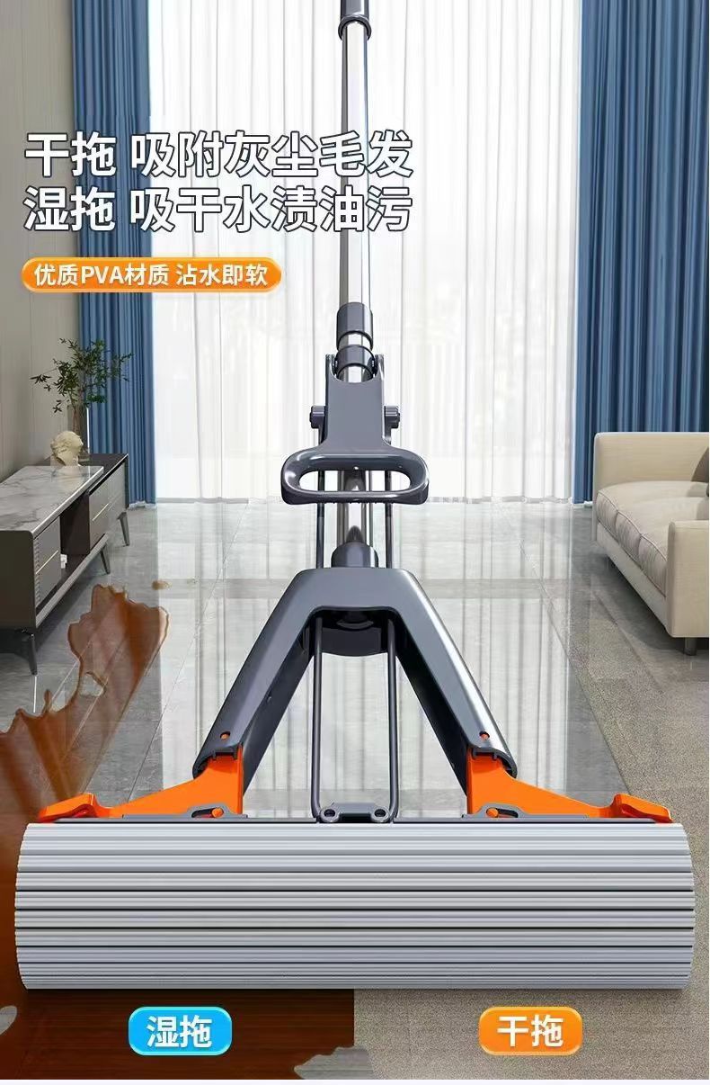 一拖净胶棉拖把免手加厚对折卫生间家用海绵一拖新款懒人吸水拖地