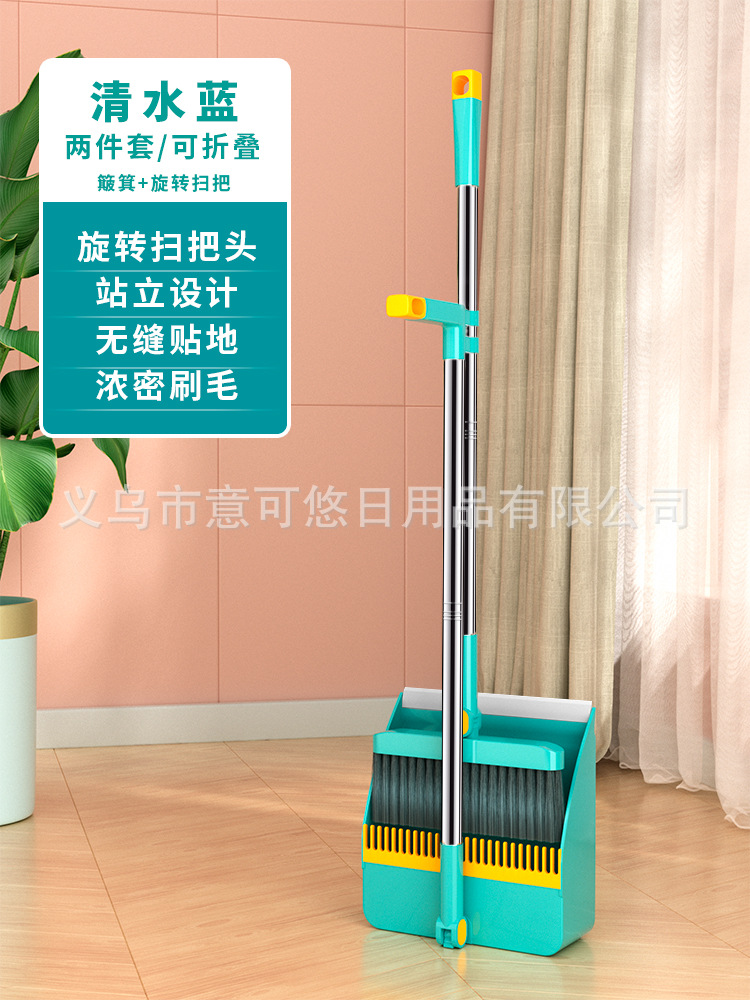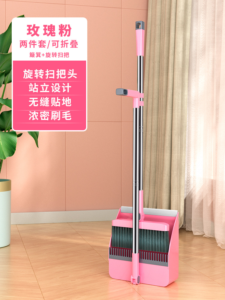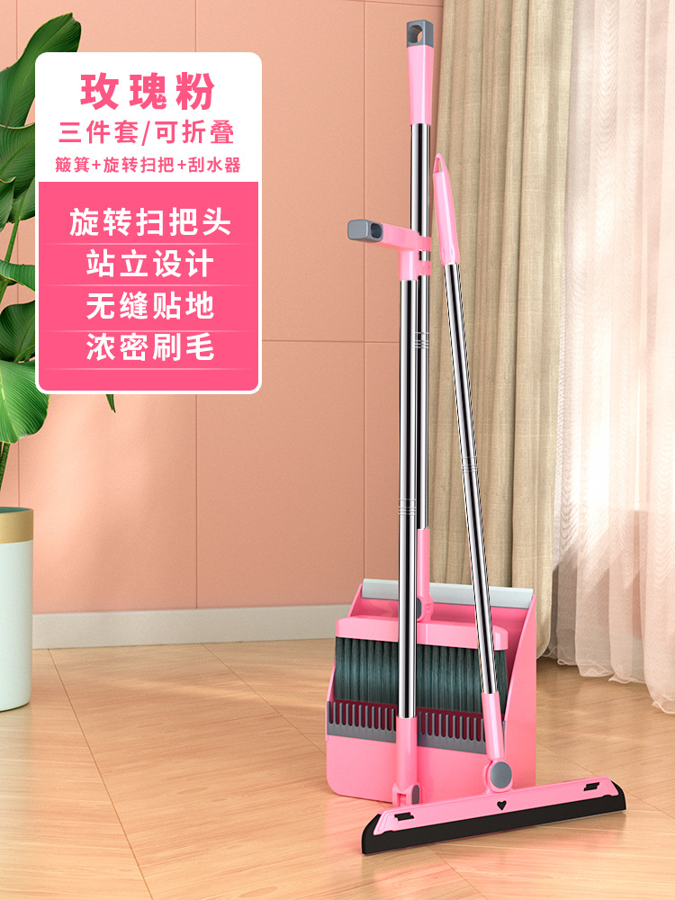 新款扫地扫把套装批发家用软毛扫帚塑料不锈钢笤帚长刮齿簸箕组合