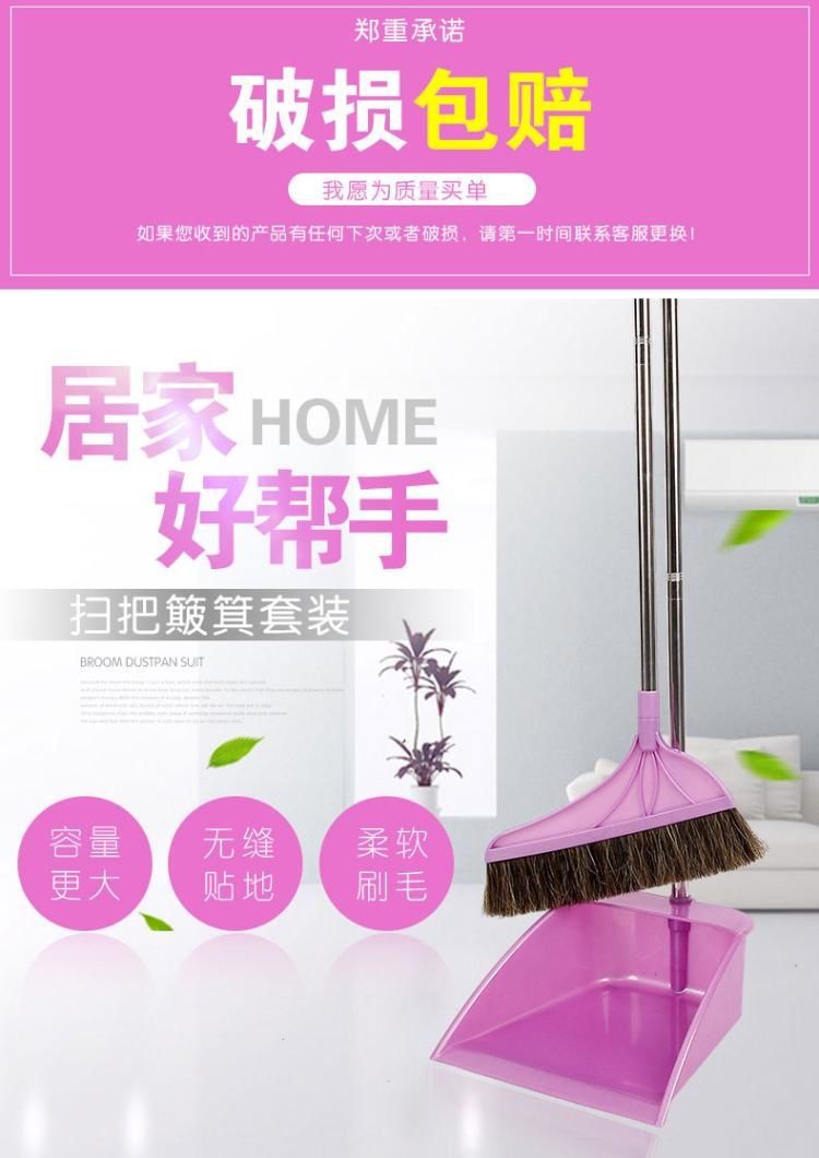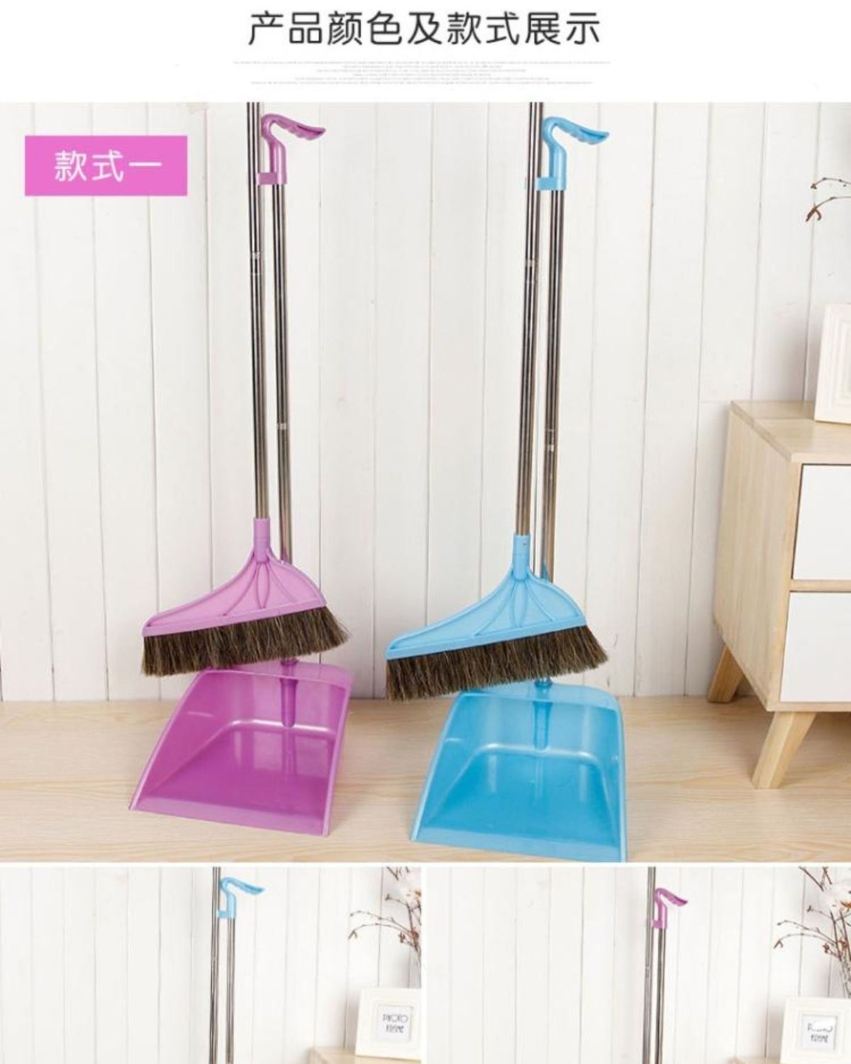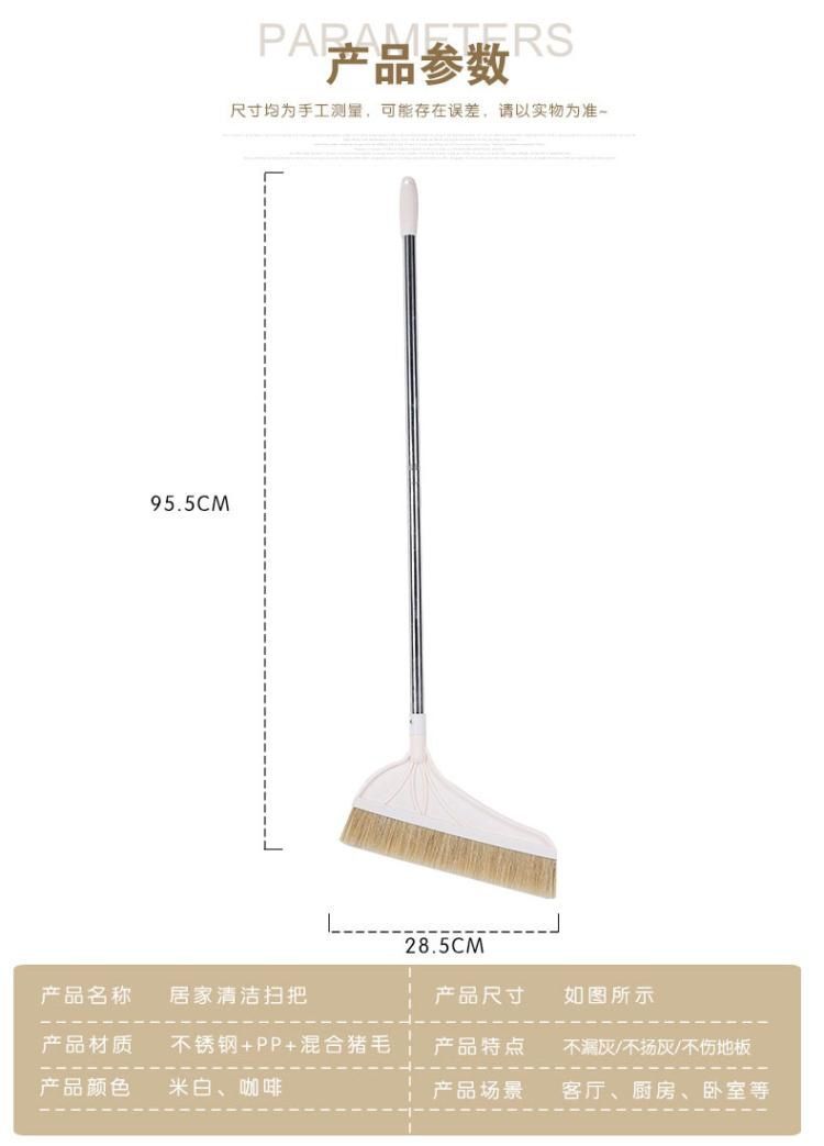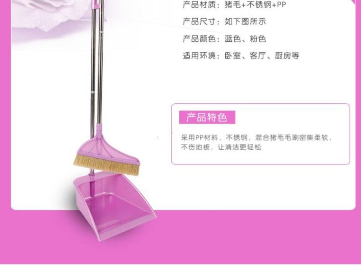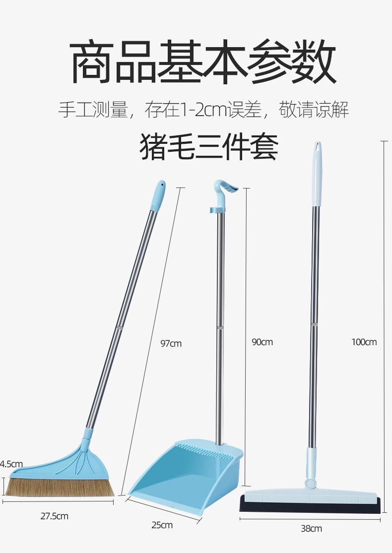 猪毛扫把猪鬃毛扫帚笤帚家用软毛加长马鬃毛不锈钢杆除尘簸箕套装