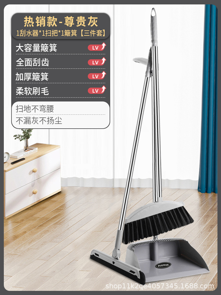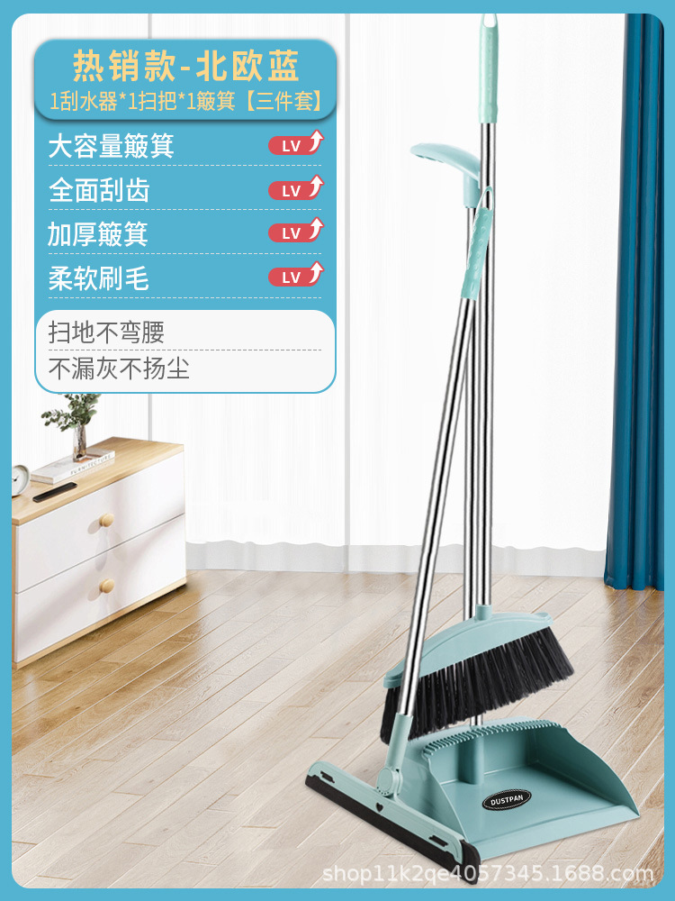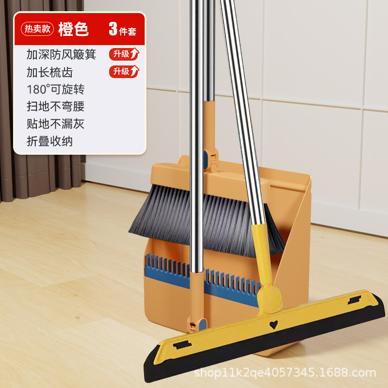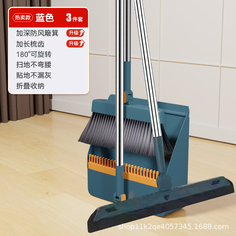 可站立折叠家用扫地软毛扫帚 梳齿型簸箕 家用折叠扫帚组合套装