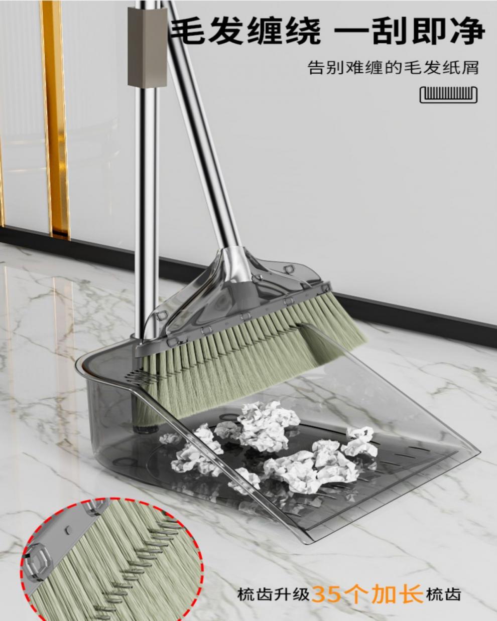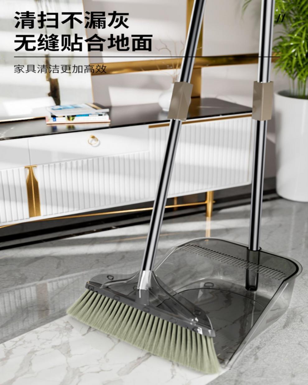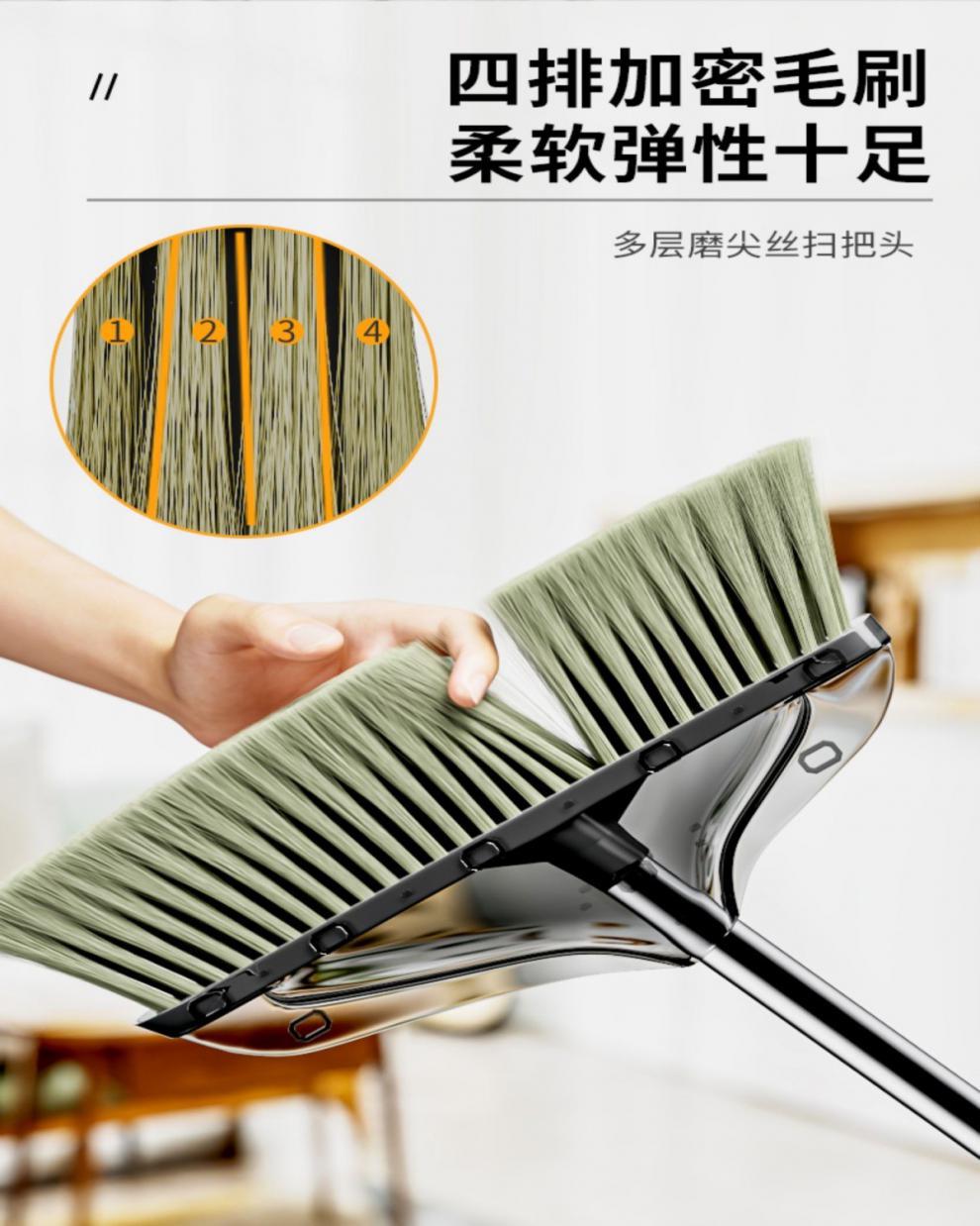 轻奢家用透明扫把簸箕套装加厚加大干湿两用不锈钢杆防风组合笤帚