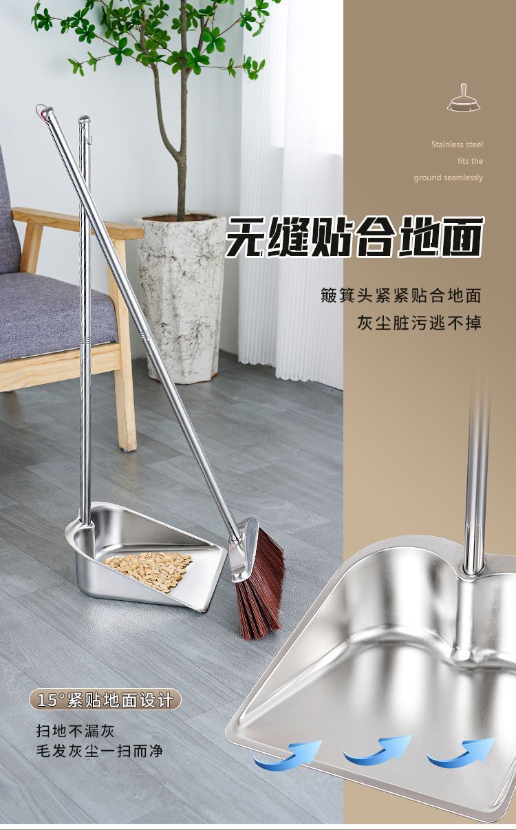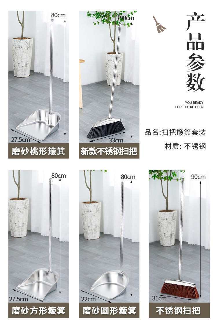 加厚不锈钢扫把家用套装单个簸箕垃圾铲组合扫帚笤帚商用室内户外